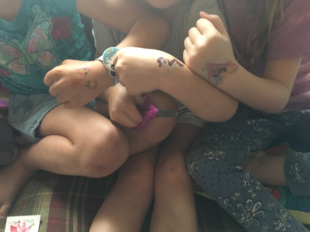 So I at times have 3 nieces it’s a long story, but my niece has two half-sisters. They are completely sisters though and we have had all 3 of them on multiple occasions. My niece was in a tattoo phase along with the other 2. My niece put one on all of us: her sisters, me and my mom.