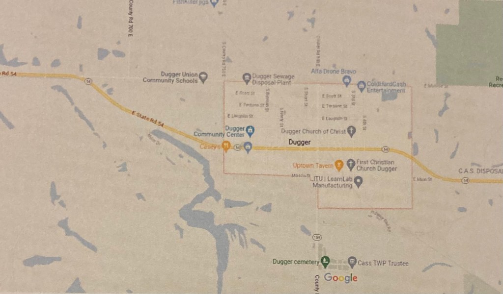 We began the trip from south of Dugger