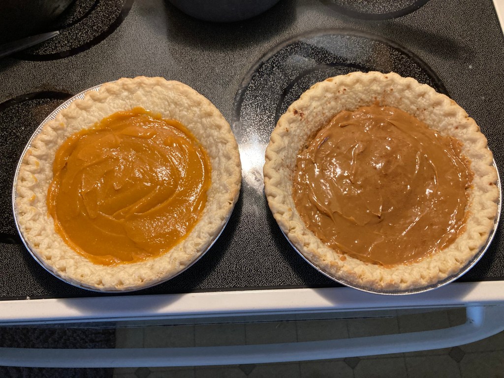 The bottom has been splattered with Apple Pie Seasoning for the Caramel Pie.