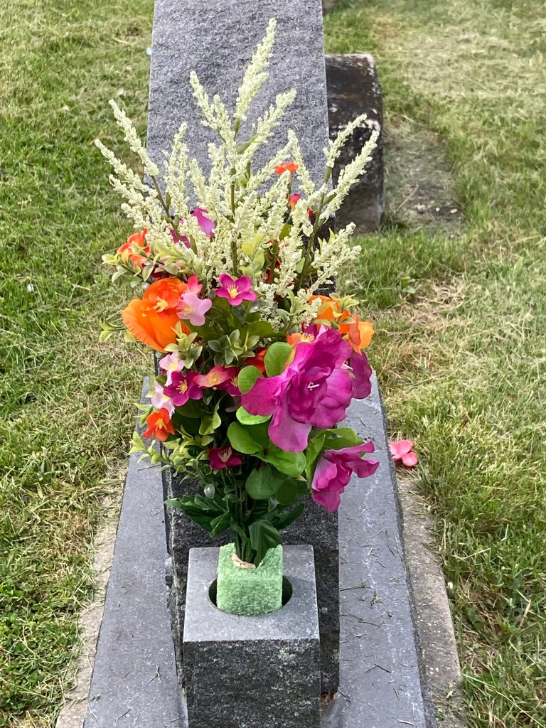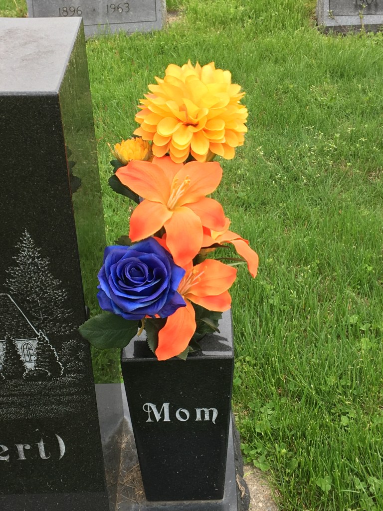 As a teenager and young adult I began helping with the placement of flowers on the gravestones. We used to put quite a few around at various cemeteries to honor our beloved ones. Even now, I enjoy creating different silk flowers together making a unique sight of color for the stones.