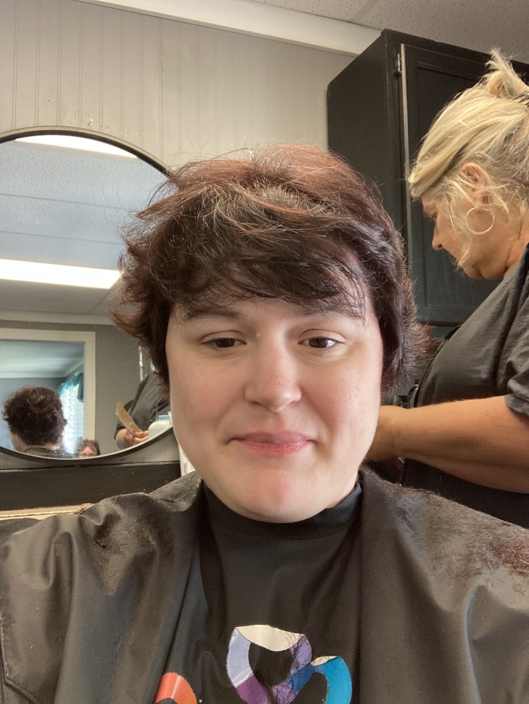 Finally July 3rd was our day that aligned, thank goodness. I kept thinking I might get cold feet. So this is what we started with long curly hair.