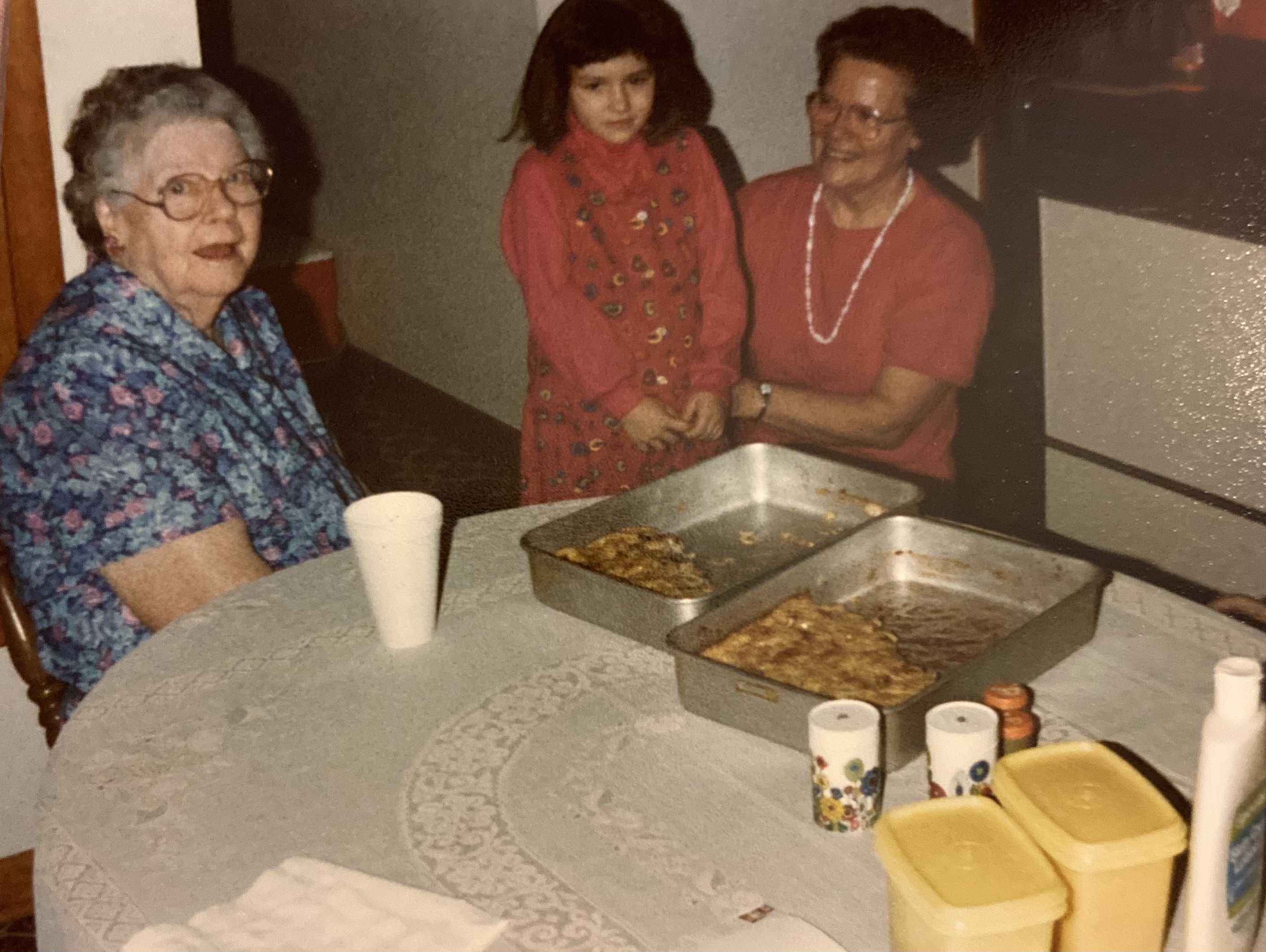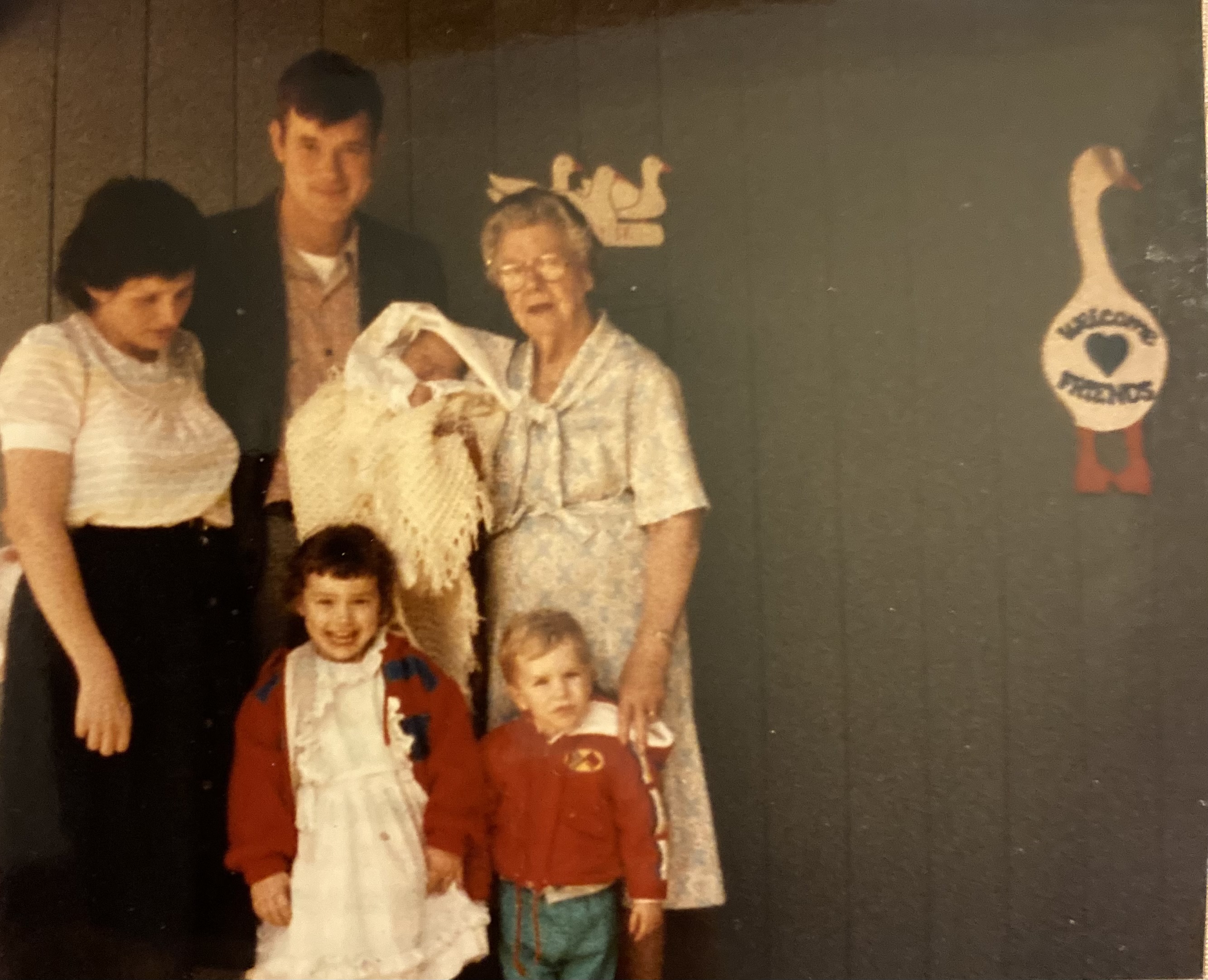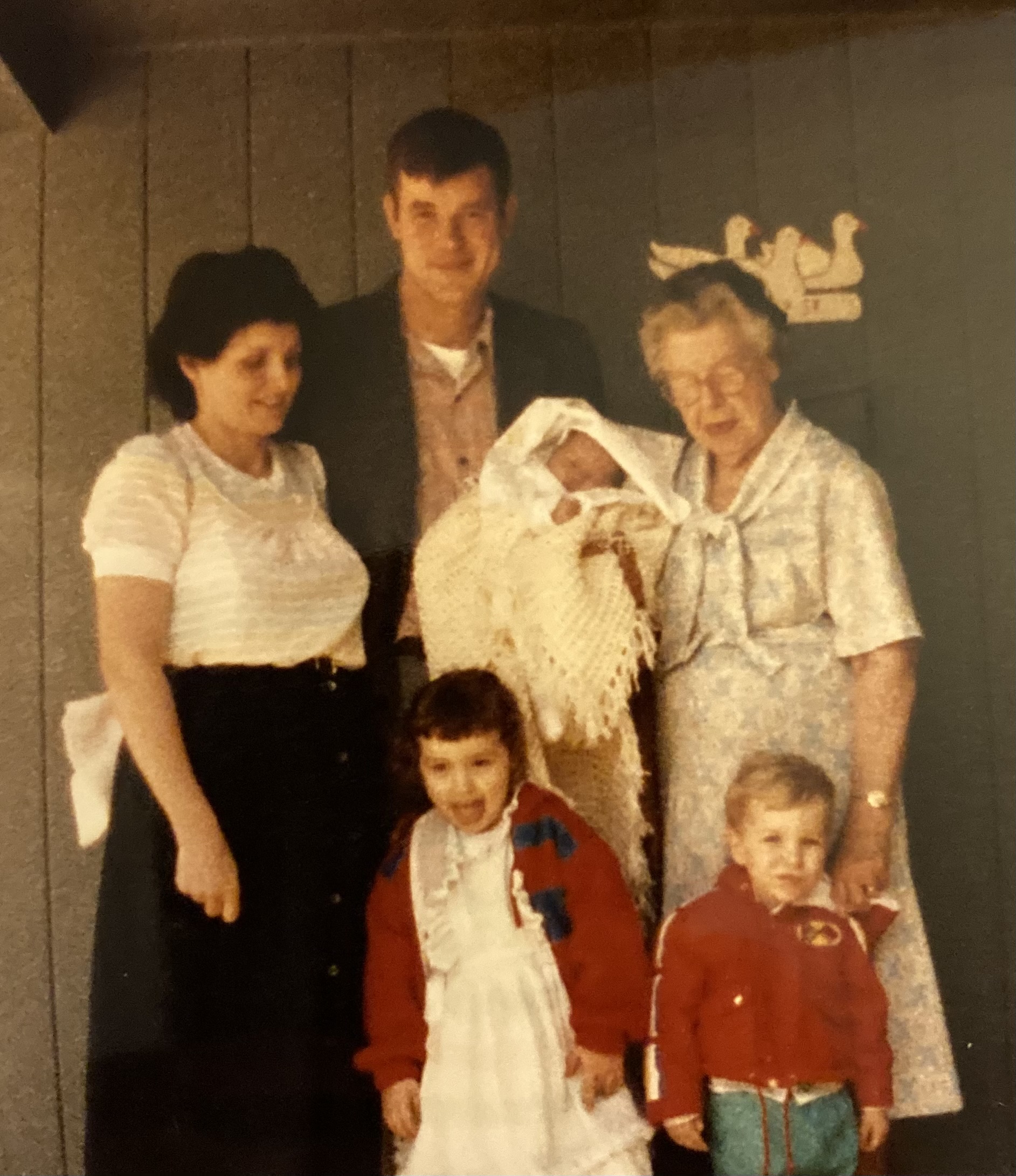 This is just a tiny fraction though of her family and these are new pictures I am seeing thanks to Aunt Martha’s ability to siphon through our family pictures recently. My expressions were not rehearsed I can’t believe I stuck my tongue out even. Jared and James look like saints next to the crazy older sister that day! Then in the 3 generations picture I don’t know what’s wrong with me I look uncomfortable in my skin, but I have both of my Grandma’s and plenty of desserts right in of us with the customary cut up carrots and vegetables in those yellow containers in the corner. Grandma Betty always had those available at all times.