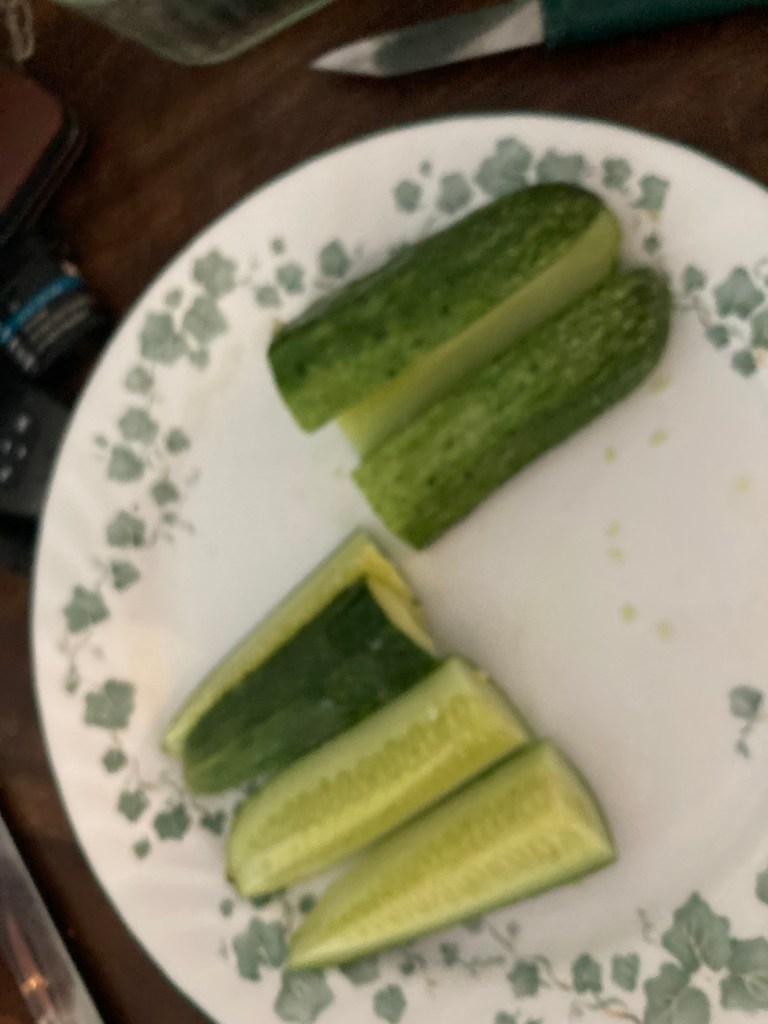 In a few minutes I will be playing around with a different mixture of herbs for this last batch of pickles. Mediterranean Blend and I am looking forward to trying this batch!