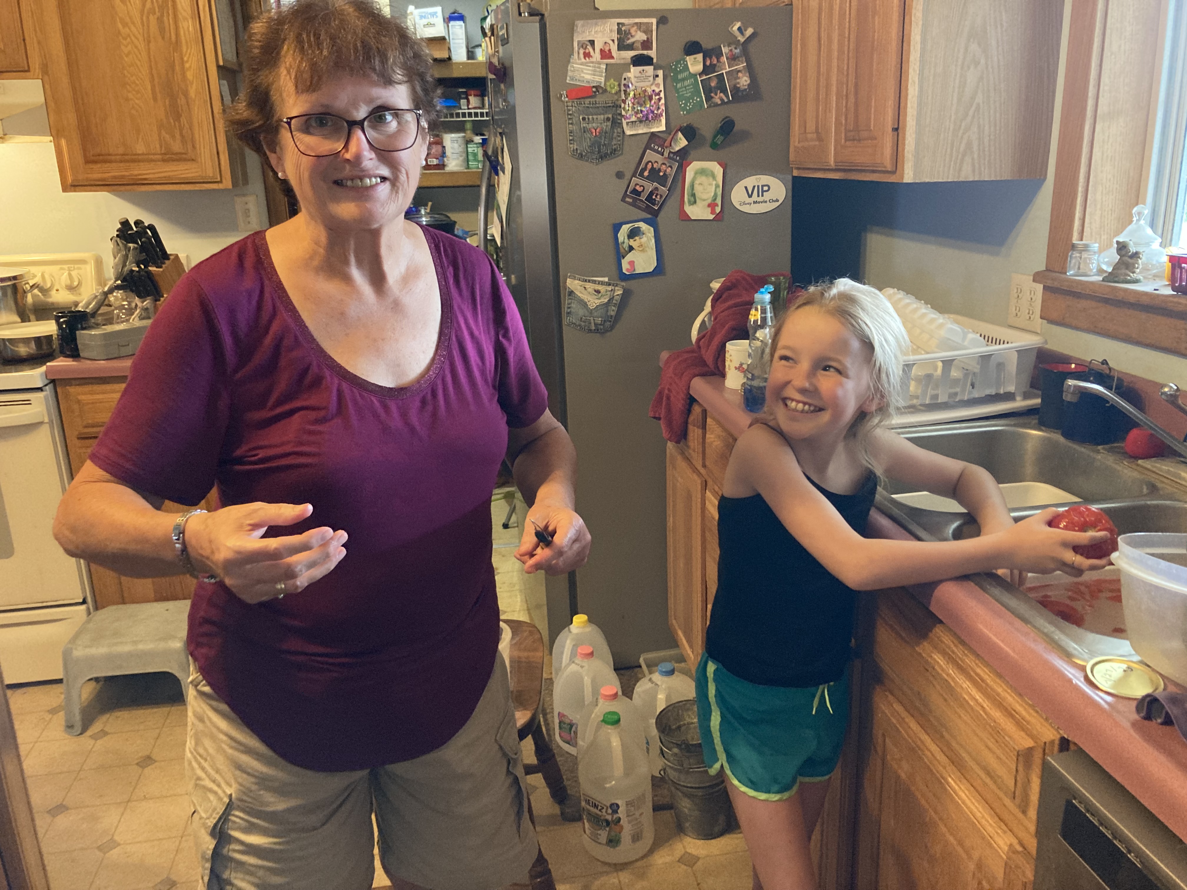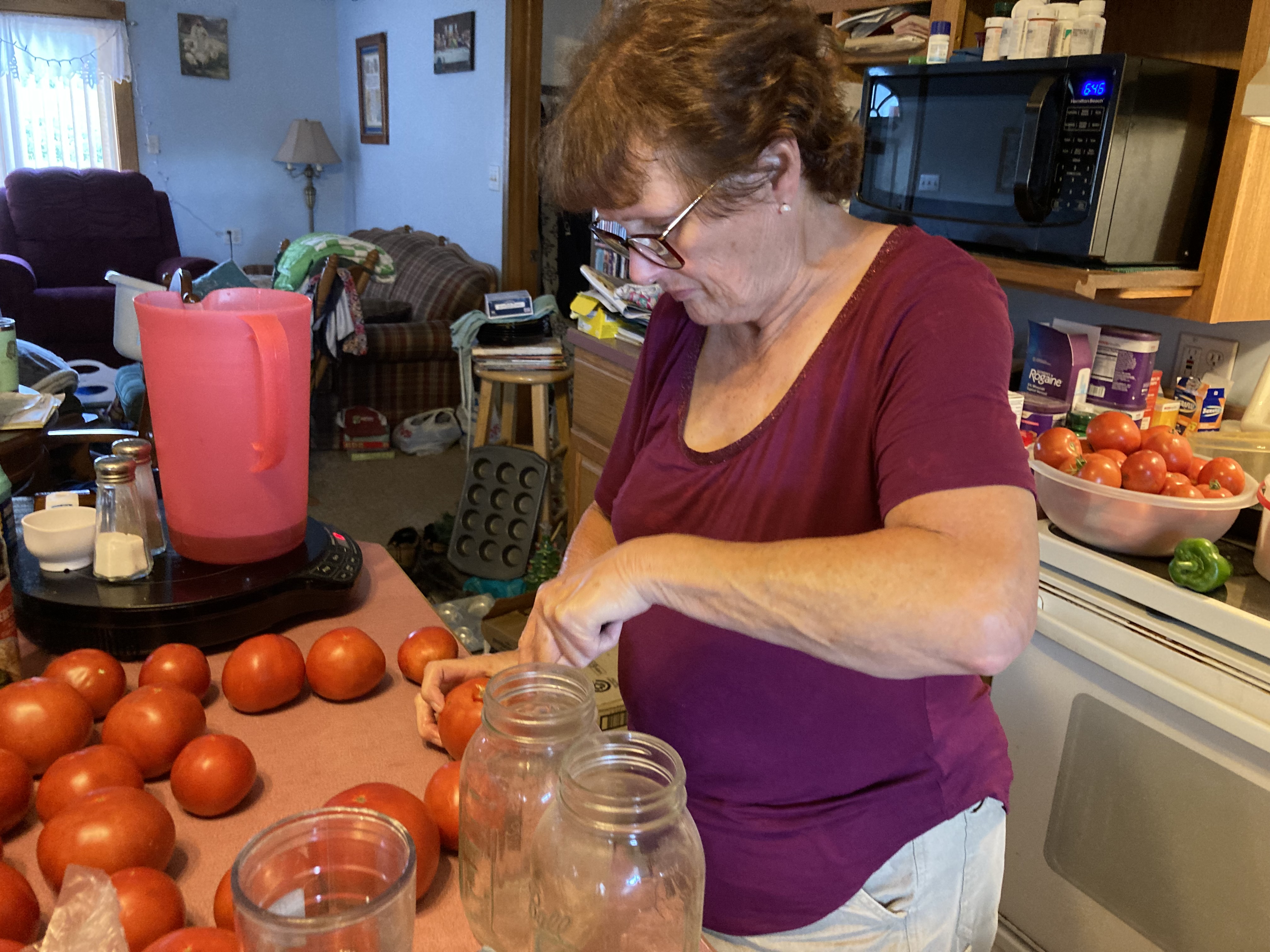 We wouldn’t have been able to get as much done without our little girl helping us. Selena was zealous in her job and worked quickly. So much that she surprised Mammaw with exactly how fast the tomatoes were disappearing from the counter into the next phase.