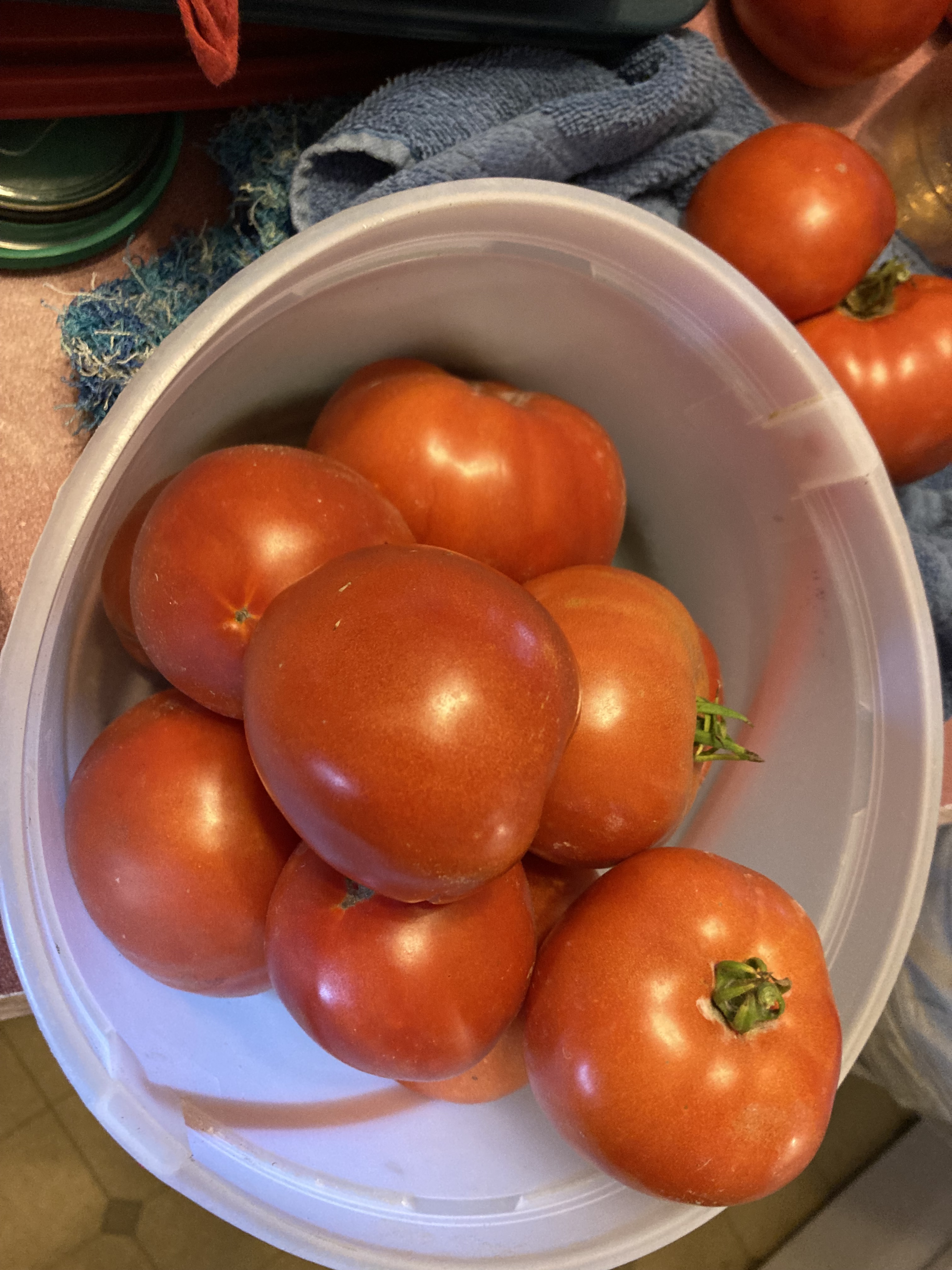 This evening before we take her home to mom’s a little girl got another chance to show off her adeptness peeling tomatoes for canning purposes. In such a short week she has mastered this portion of the process.