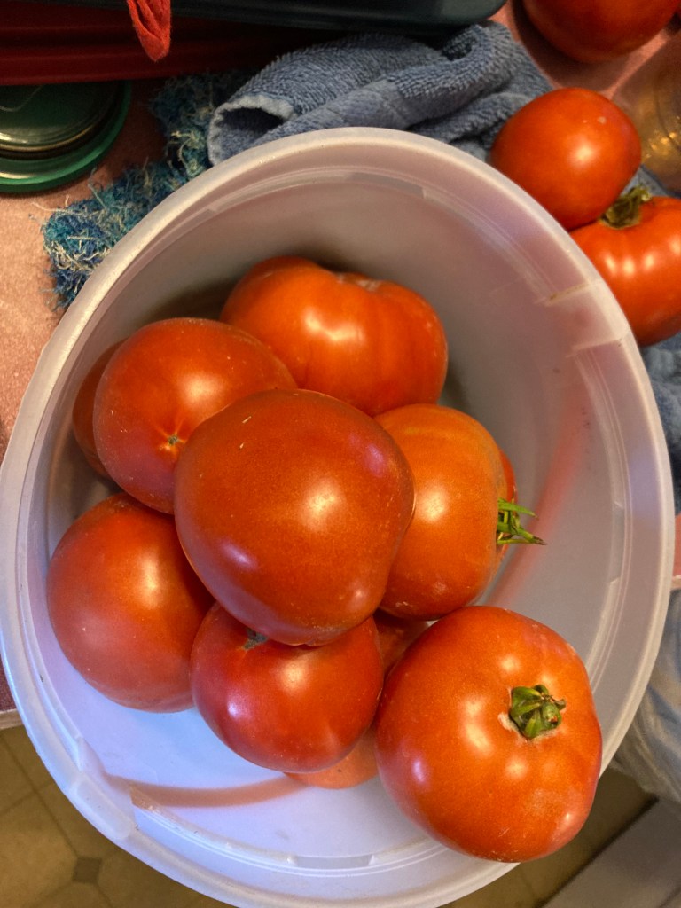 Although that issue caused me migraines that I should not be having due to my prophylactic pill that has been stopping my migraines. Mom was beginning to work up tomatoes that night, but I couldn’t with my head and the allergic reaction.