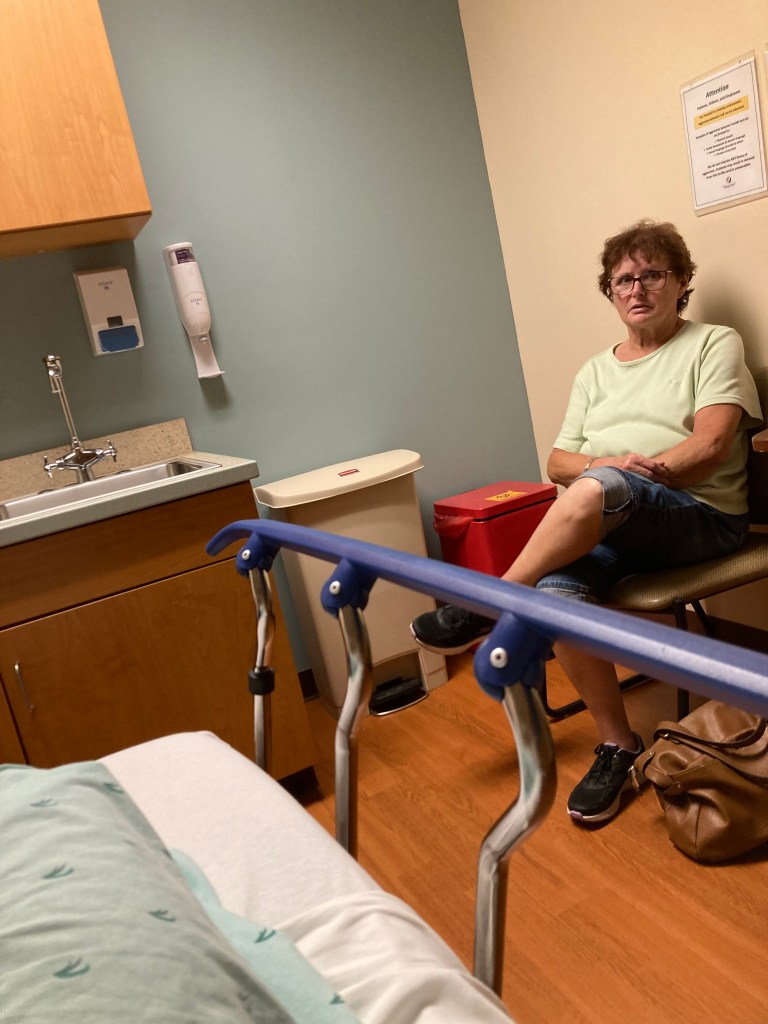So my Mom likes to talk. Saturday morning she went to the pharmacy and let out enough of my accident and my symptoms to alert the pharmacist. She promptly called me to say, we need to take you to the ER to get checked out. My face drained I was already exhausted whatever adrenaline I have had since the accident had disappeared. We actually walked that morning as well too, but my head started a bit earlier Saturday morning and just before Mom called me my hands started feeling like pins and needles.