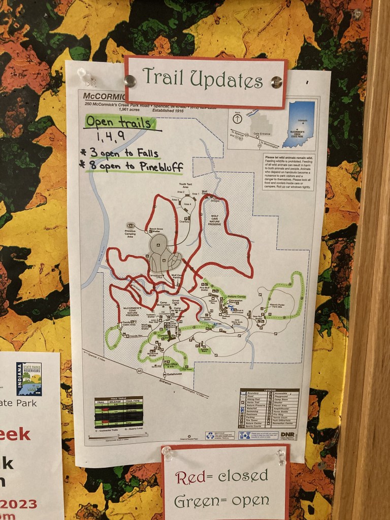 The tornado did massive damage back on the evening of Friday April 4th. I can still remember that night. Mom and I had to go to the basement. The tornado seemed to head right towards the camping area of the park. It was decimated. The Nature Center now has a video journal of what damage took place. The map shows red marking the affected areas which equals about 1/2 or more of the park.