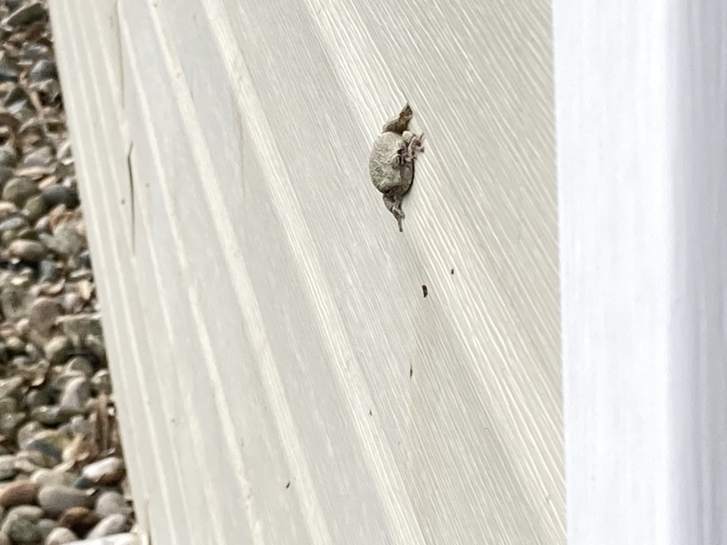 Before getting into the car, Saturday, to head to the Cemetery for our walk; I slipped outside to check on the temperature. Something barely caught my attention as I walked past the car coming back into the carport. It was so tiny it barely registered.