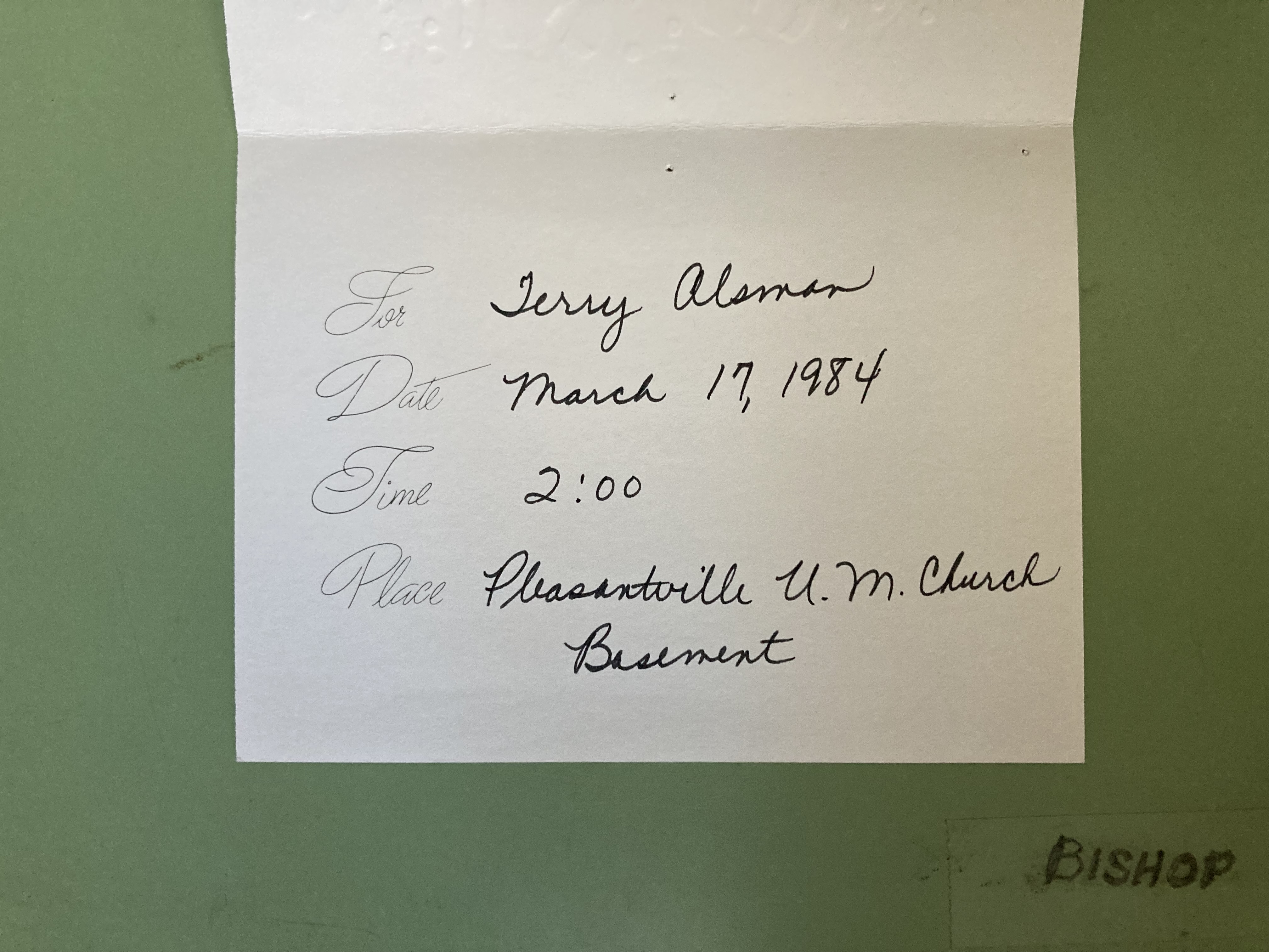 When I took these photos I missed one of the cards that was still in the envelope Grandma wrote on. This is the invite to the ‘Wedding Shower’ at Grandma’s Church.