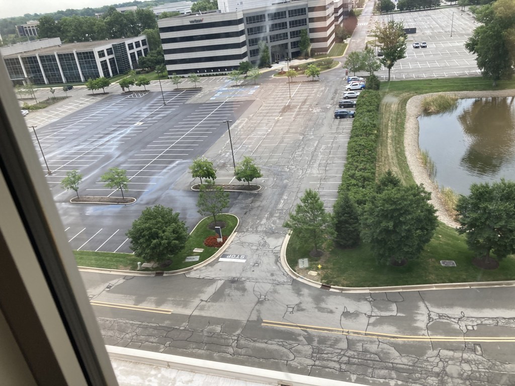 Believing we would have a nice restful sleep was a little bit naive, I suppose. The one upside is that I wasn’t completely alone on the 9th floor like I was at Drury Inn last year. Fortunately there’s only 3 levels here. That did make me nervous looking out that window last July.