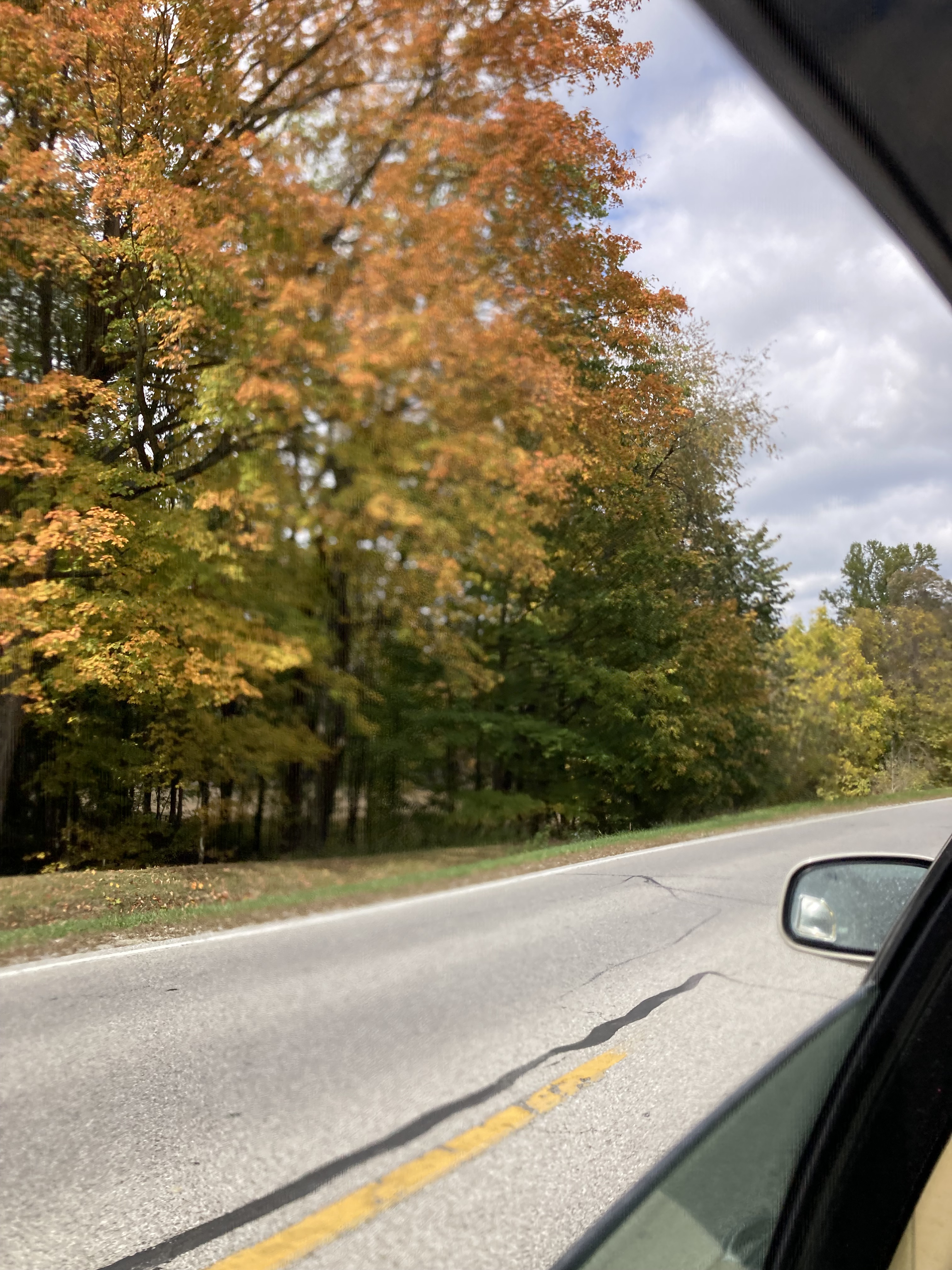 The trip home was gorgeous with the fall colors really splendid. I tried to keep the window open while taking photos in order to take my mind off being carsick again. This time the road took us to Brother Deans Home in Linton, pretty much a stop on the way home anyway and for a belated birthday conversation.