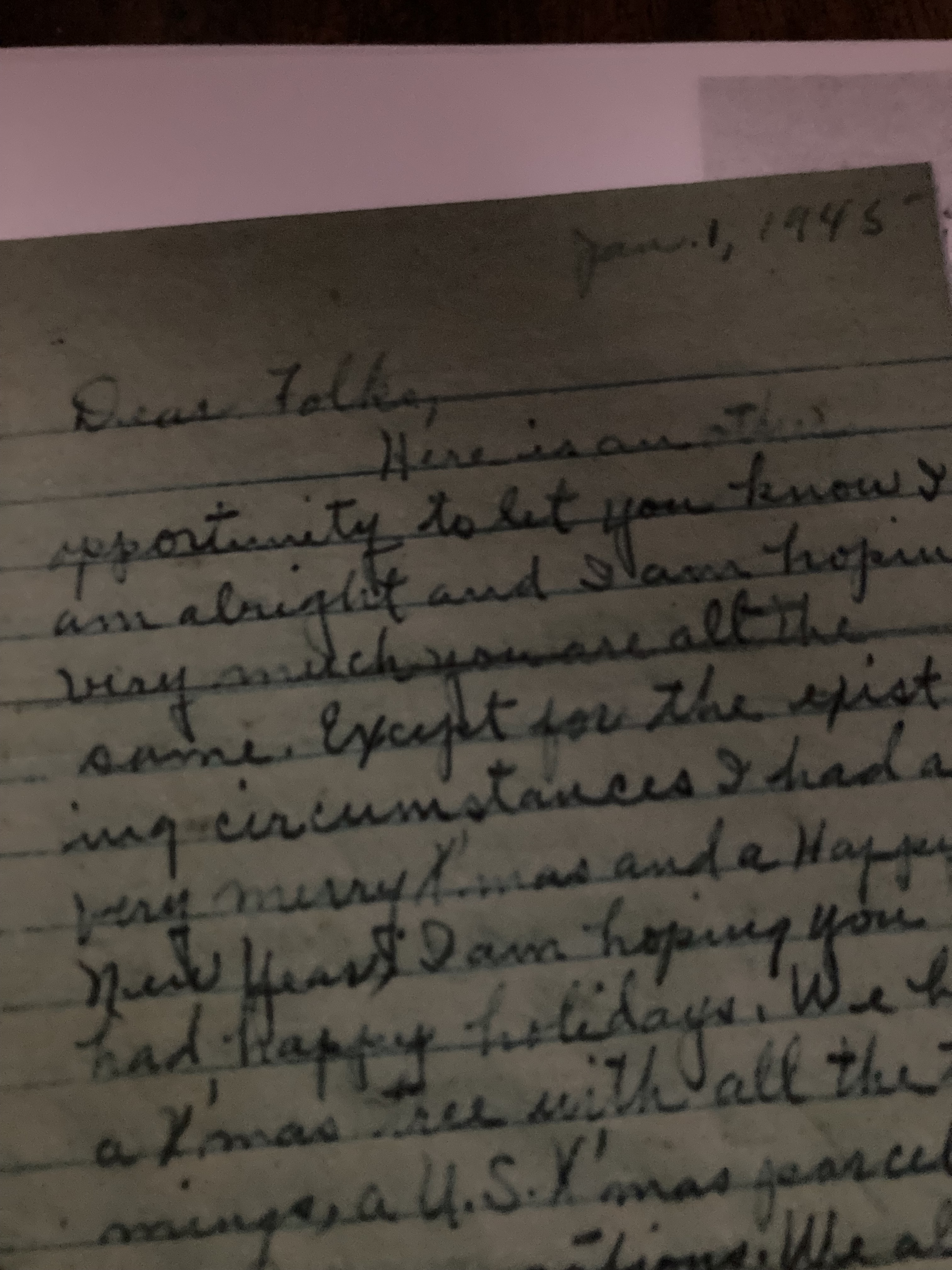 Kay, Daddy’s first cousin sent me this letter with the front and the back photos. Her dad, Uncle Norman also served in World War II and picked up being the Family Patriarch when Grandpa died being second oldest. Apparently, when their Mom, Grandma Mary died this letter got put in his stuff.
