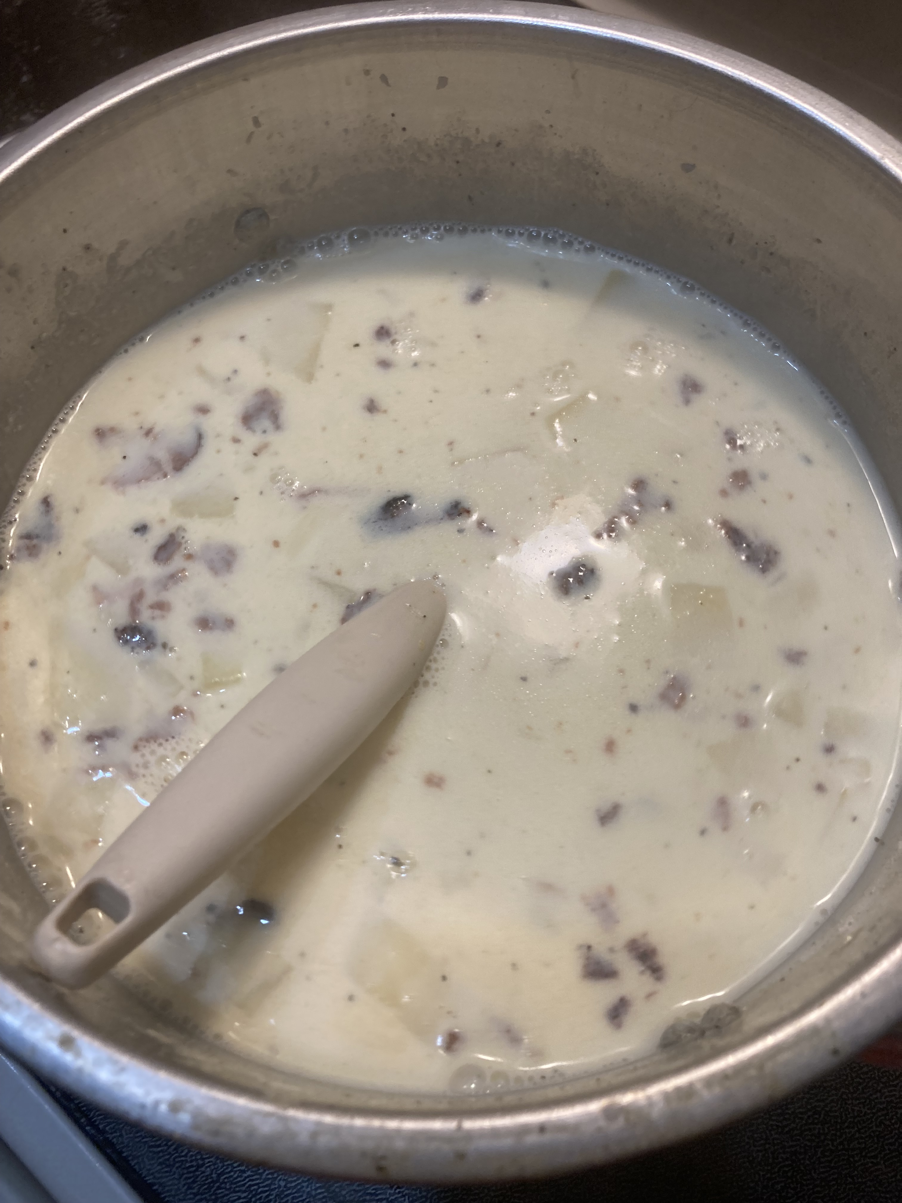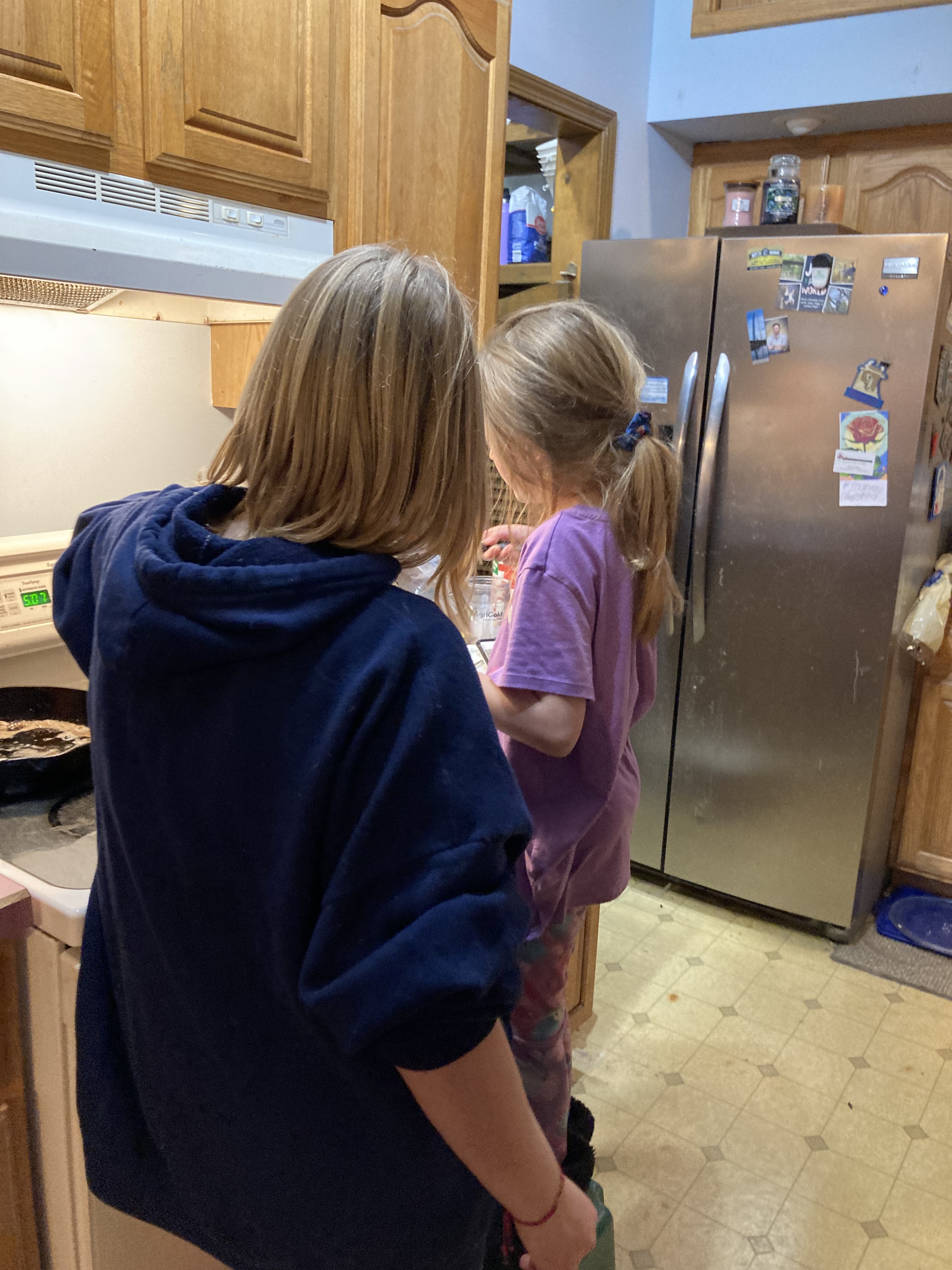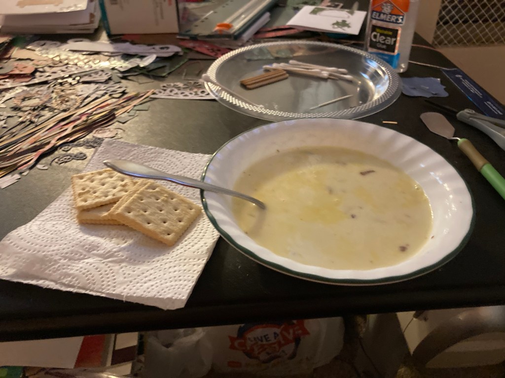 Walking the girls through my version of homemade potato soup was interesting this evening. They mostly followed my instructions and both were eager to eat what they helped prepare. It has been a little while since we’ve had it. If I don’t say so myself it was pretty good.