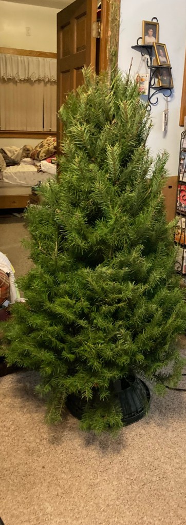The funny thing is we have had our tree most of the day and I just found out maybe 2 hours ago. Before noon mom and dad took off while I wasn’t paying attention doing some errands and mom mentioned getting a tree. They didn’t say a word about it when they came home. They waited until after supper to mention oh and we got a tree that needs to come in.