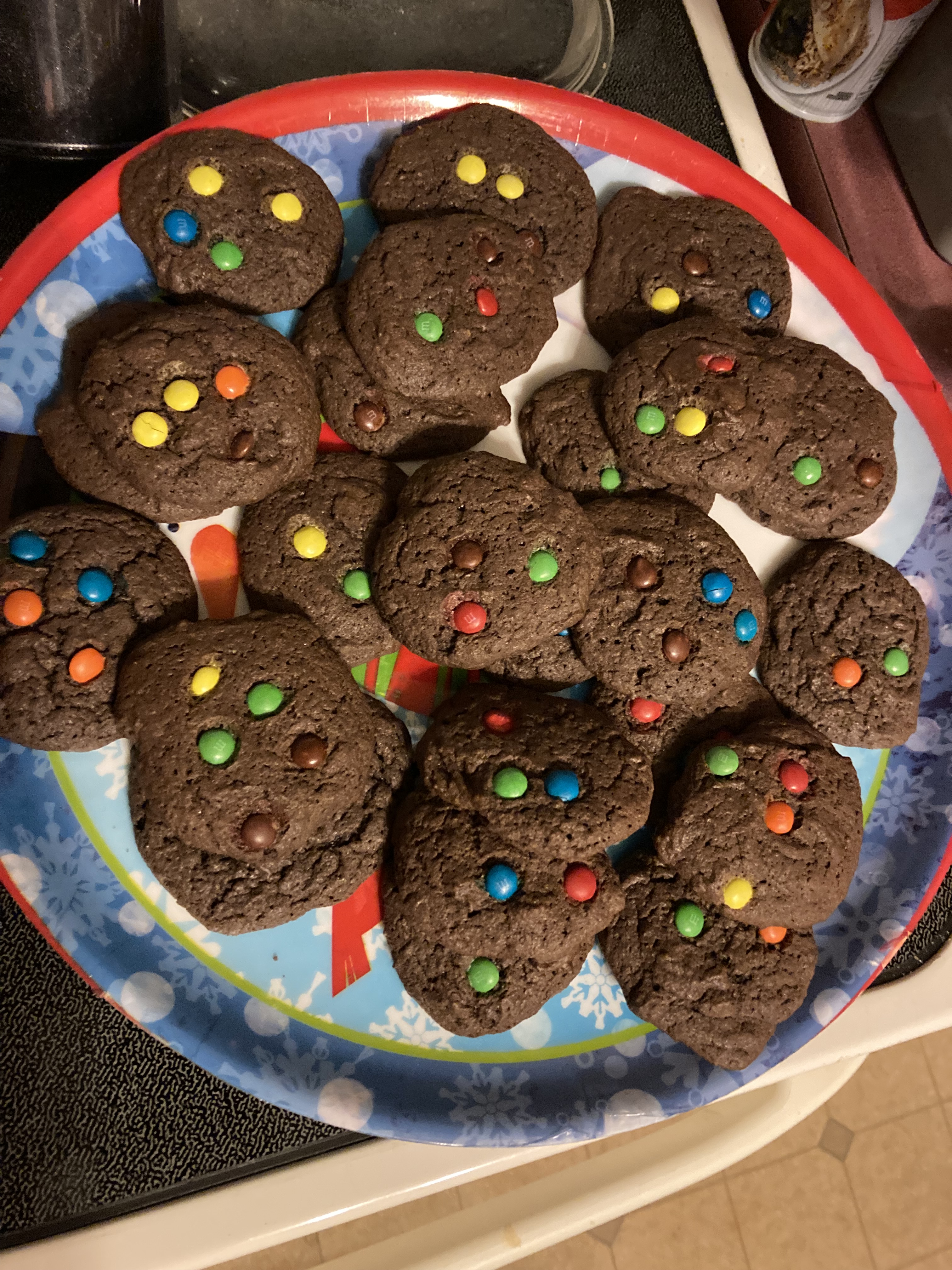 This morning we had 4 young girls and they ate a majority of my chocolate cookies with peanut butter M&M’s and they had a Red Velvet Brownie.