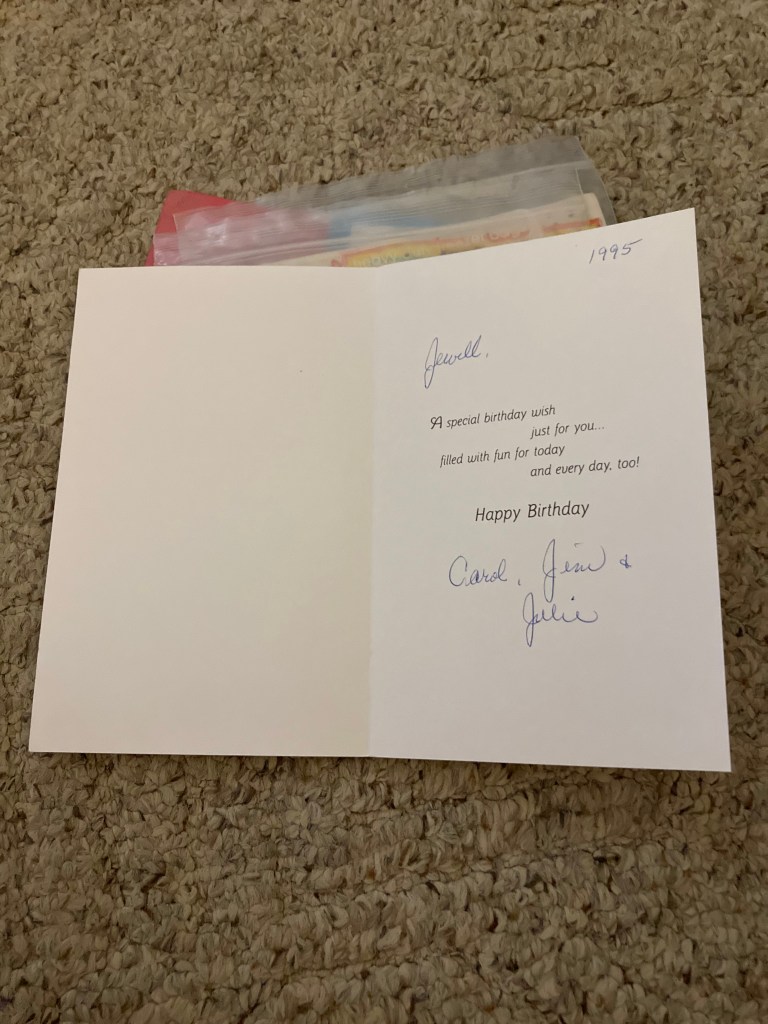 This card, fortunately, actually has a year written on it; 1995. Aunt Carol wrote it down when she signed for most of the family. Jeff is ironically not on the card, but he’s in the photo down below. He served in the Navy for a time, I’m not sure what years, but could have been during that time.