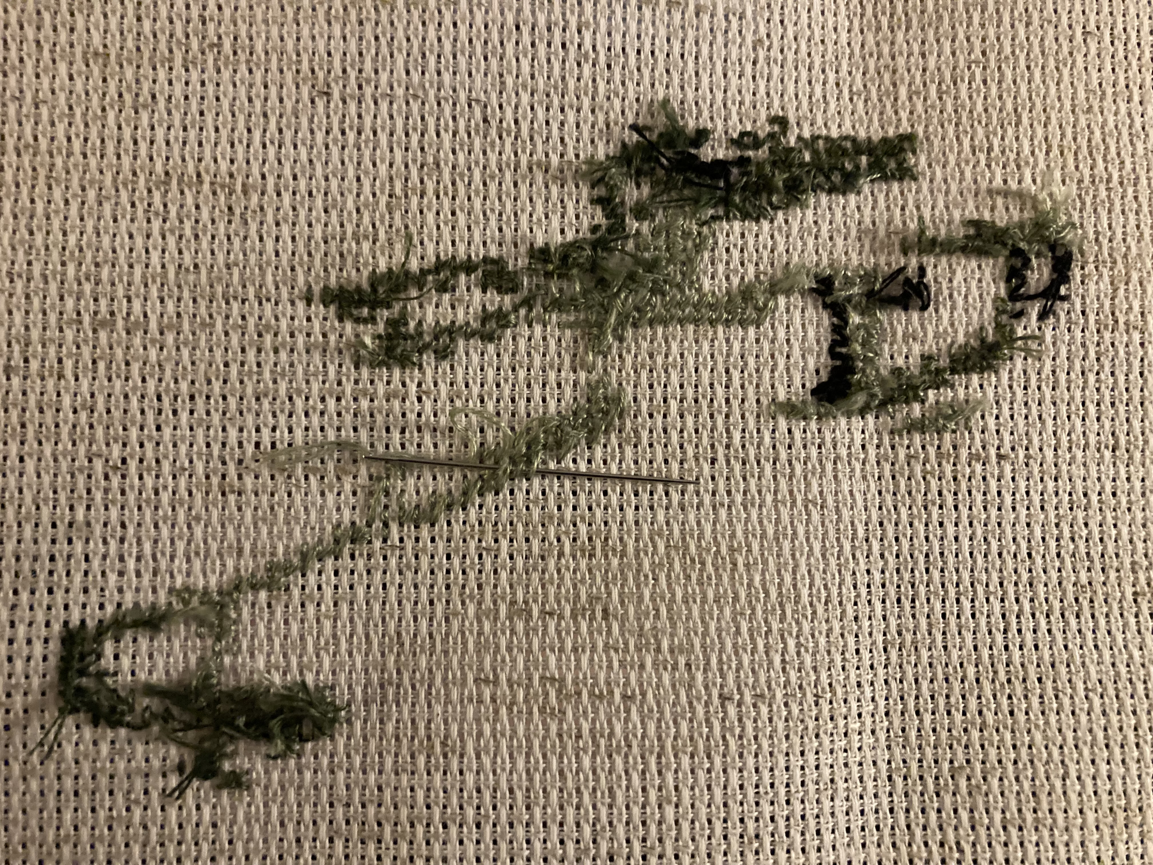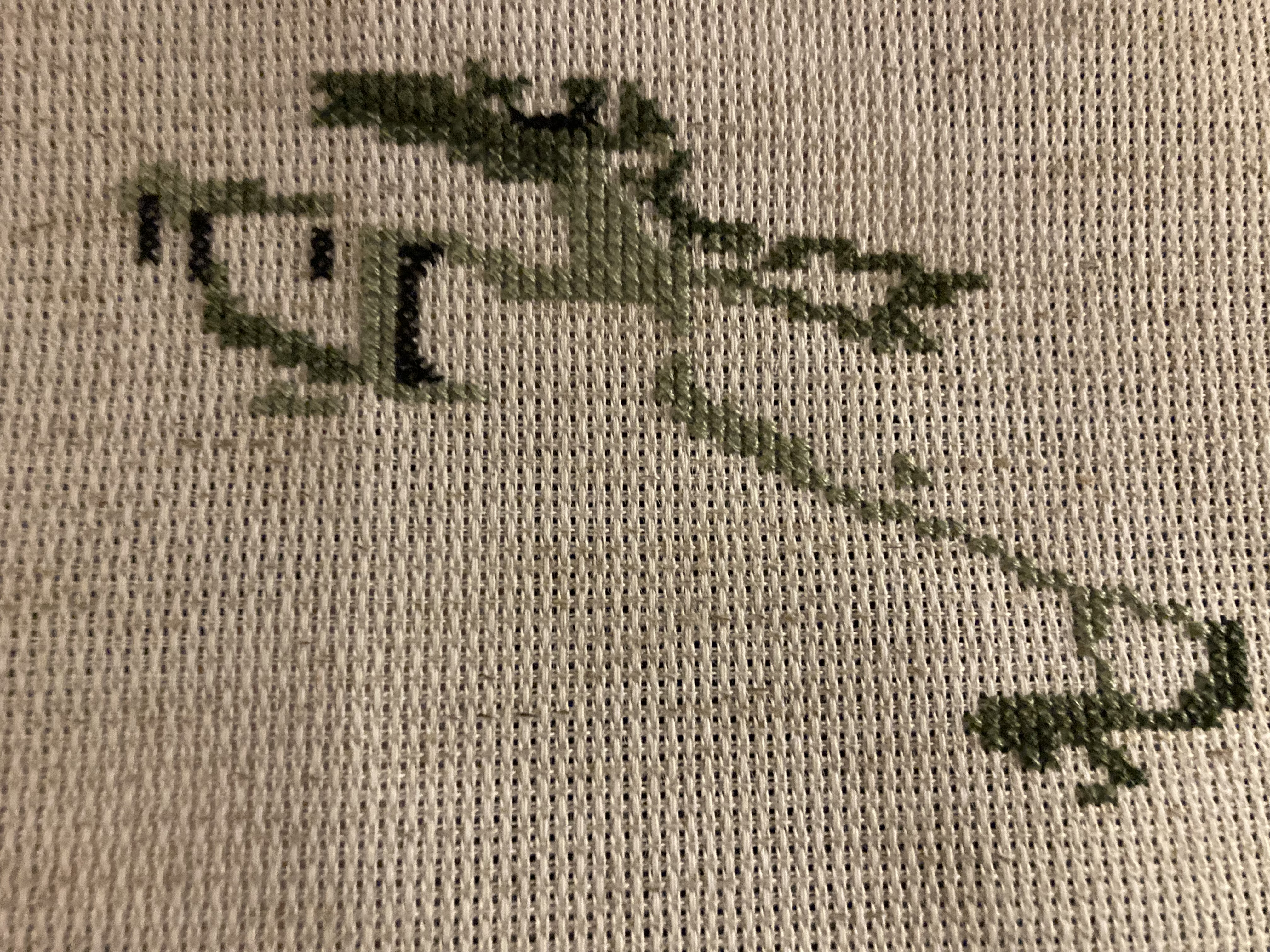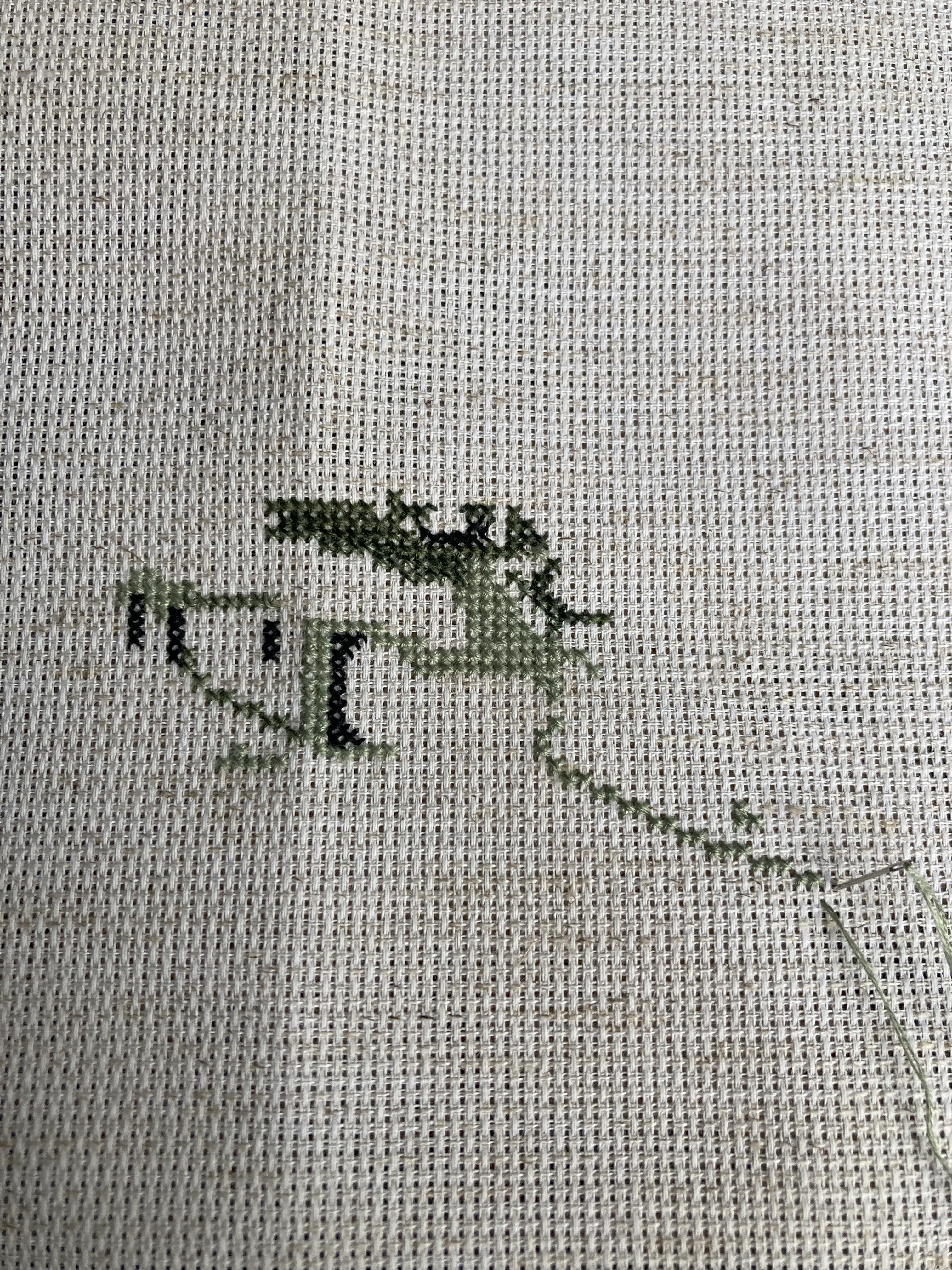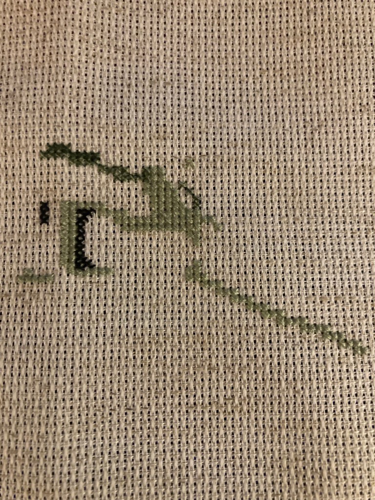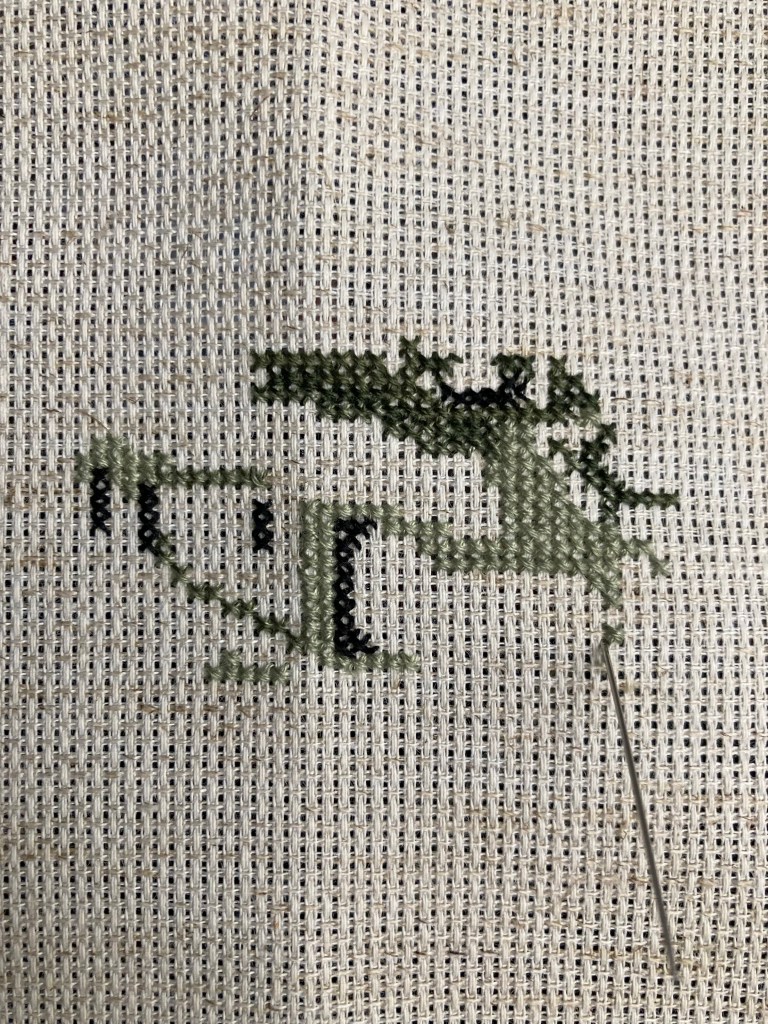 This is the correct placement finally. Unfortunately I did have to take quite a chunk of stitches out to fix the problem. These two greens are “u”.