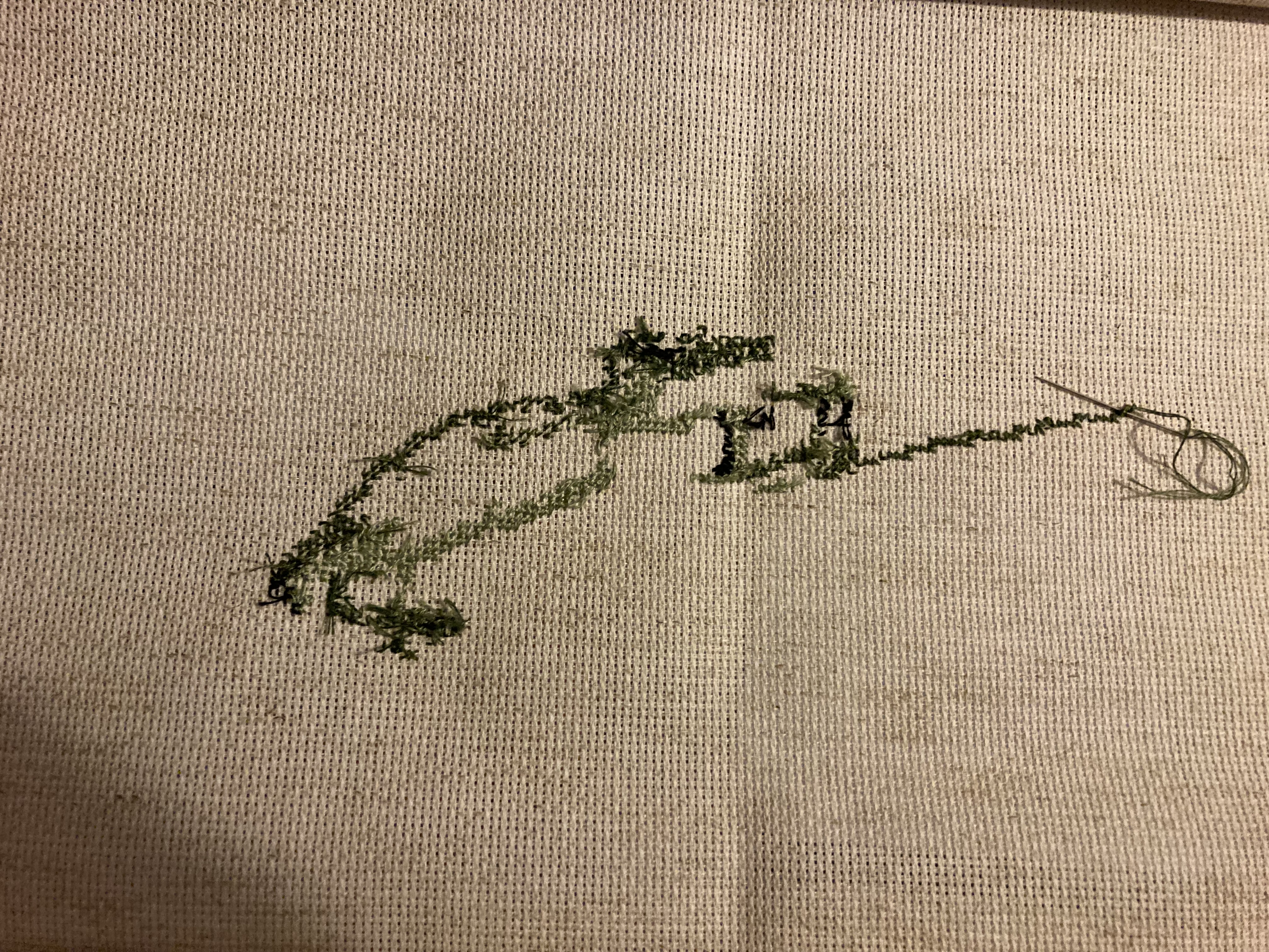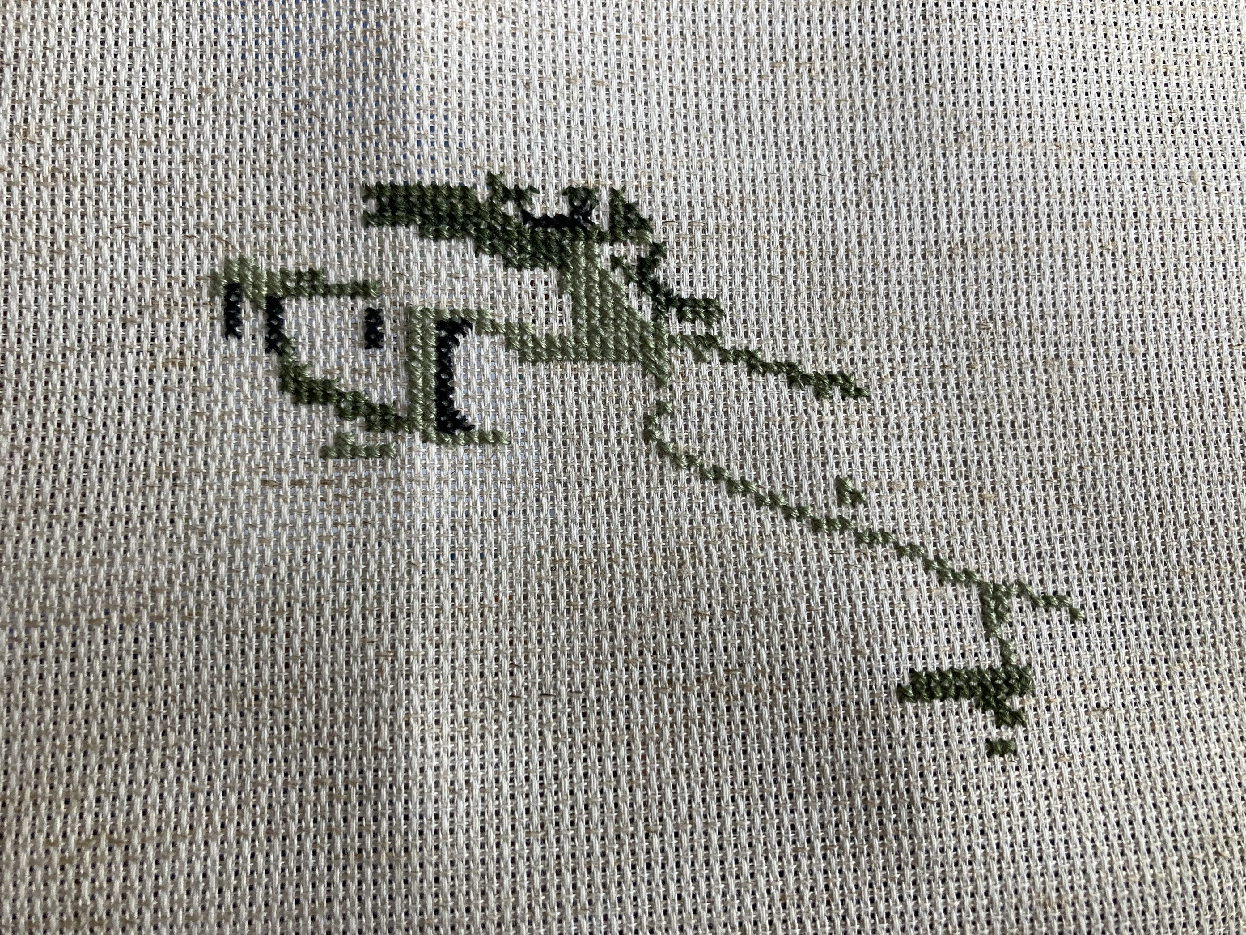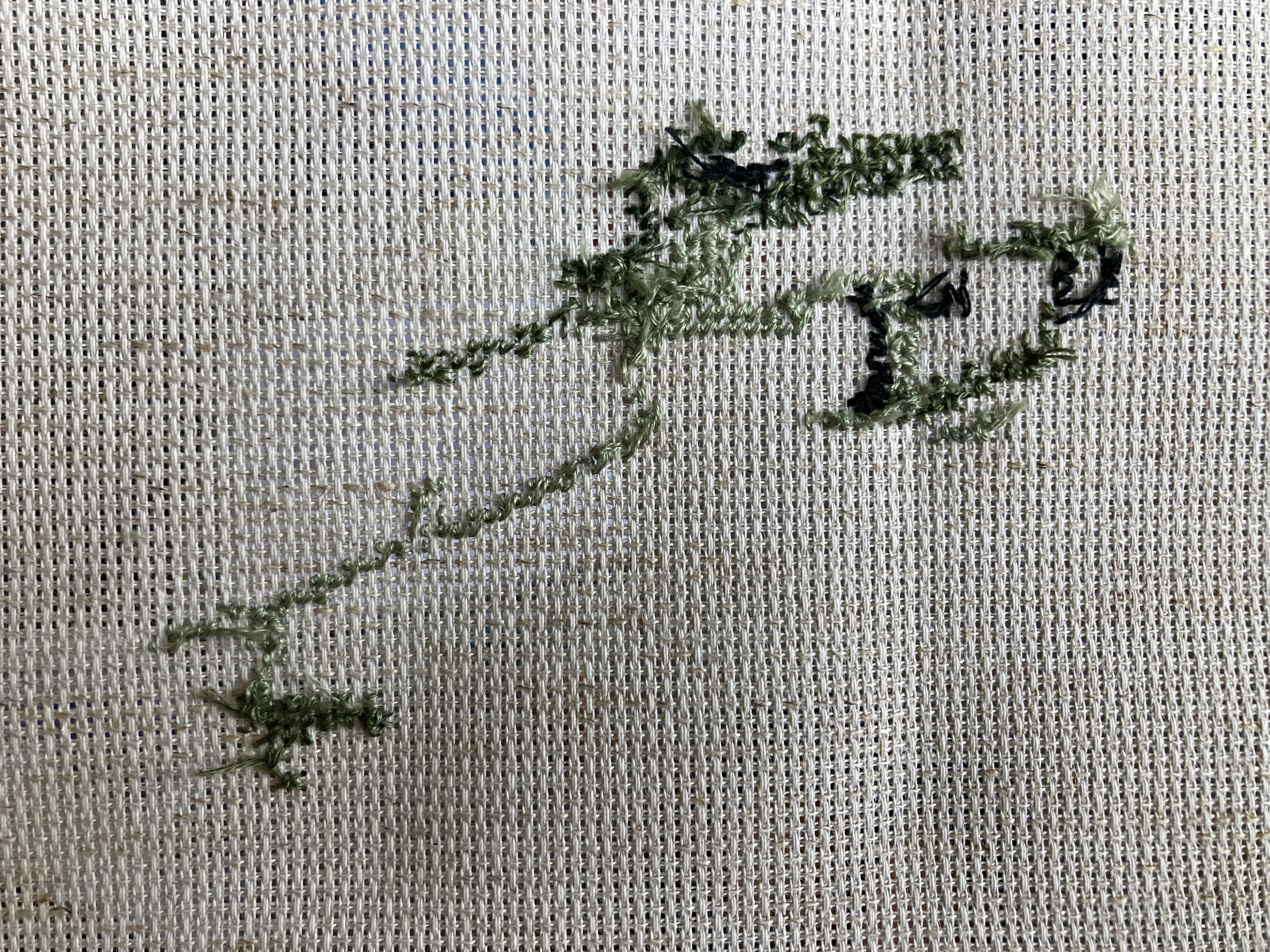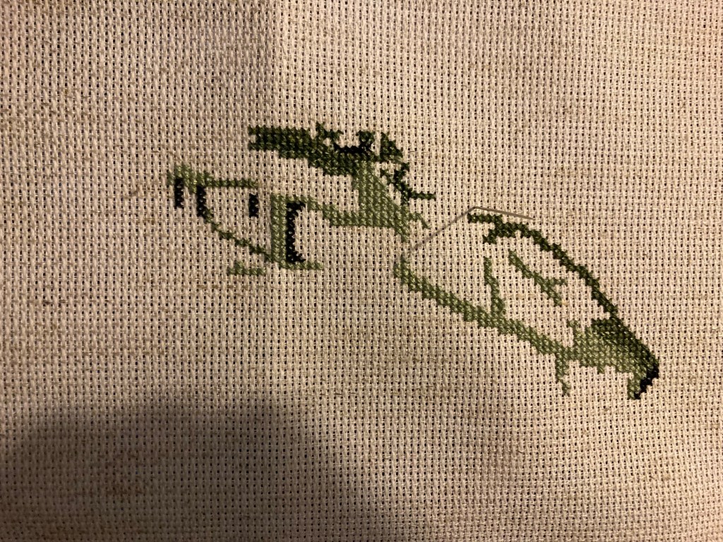 This is the correct placement finally. Unfortunately I did have to take quite a chunk of stitches out to fix the problem. These two greens are “u”.