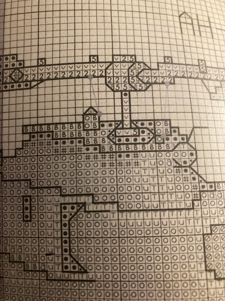It seems like a lot has happened since Saturday. Cross-stitch takes a lot of brain power counting and making sure where you are in the key helps quite a bit. So Saturday evening I noticed something off that caught me off guard. I had counted over and over again, but somehow I missed it.