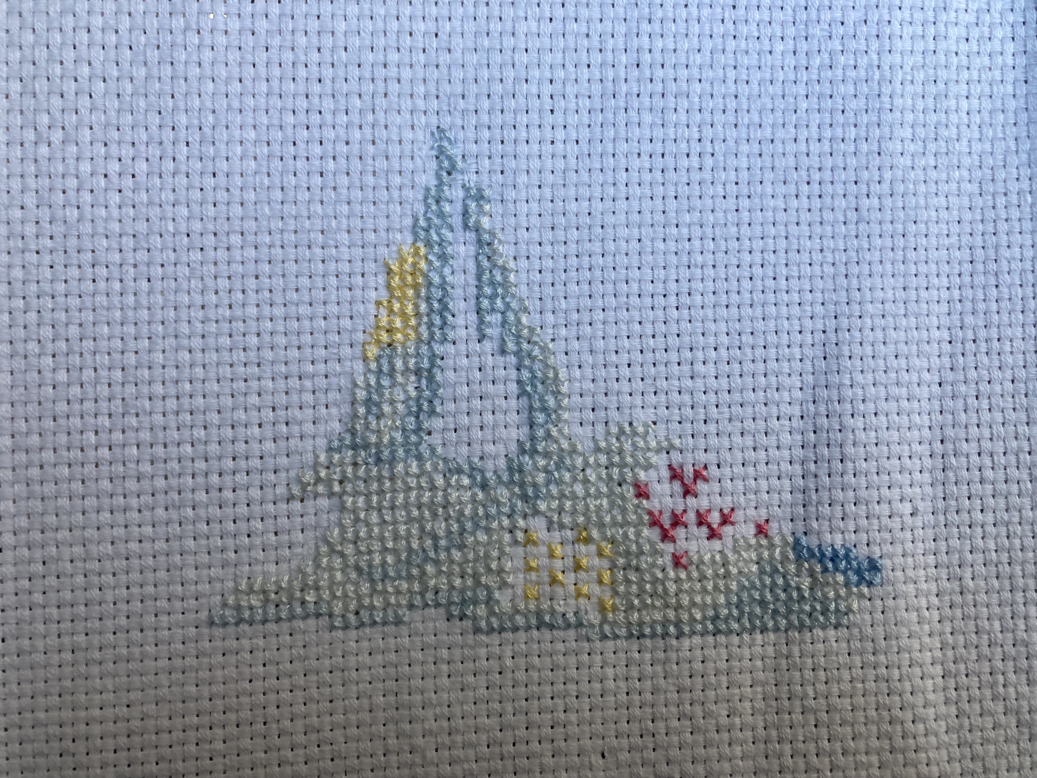 These are the first stitches to this last towel for this set of gifts. I have never taken as many photos while stitching as I have lately for these pieces for myself to see how far each day to see what I accomplished.