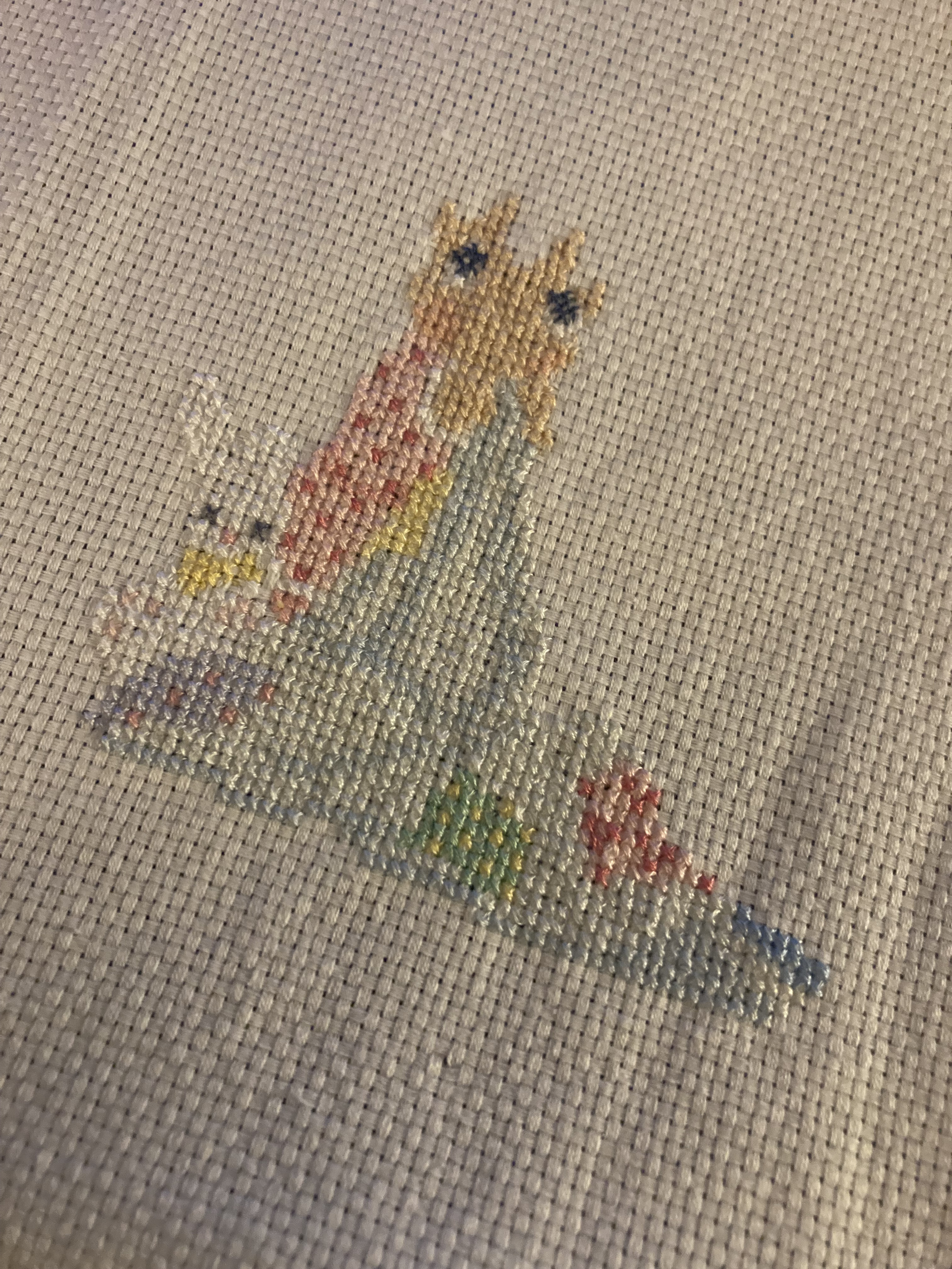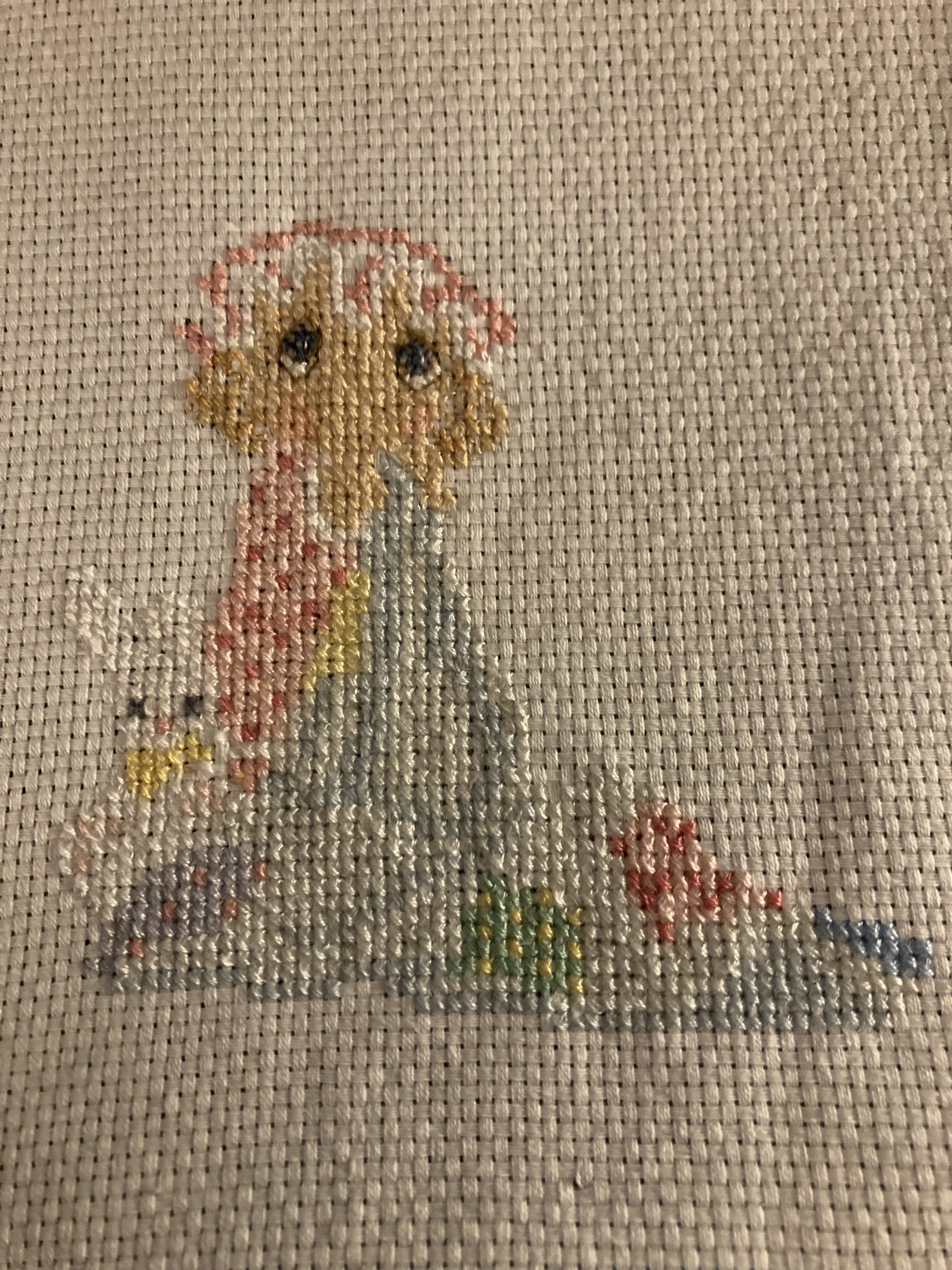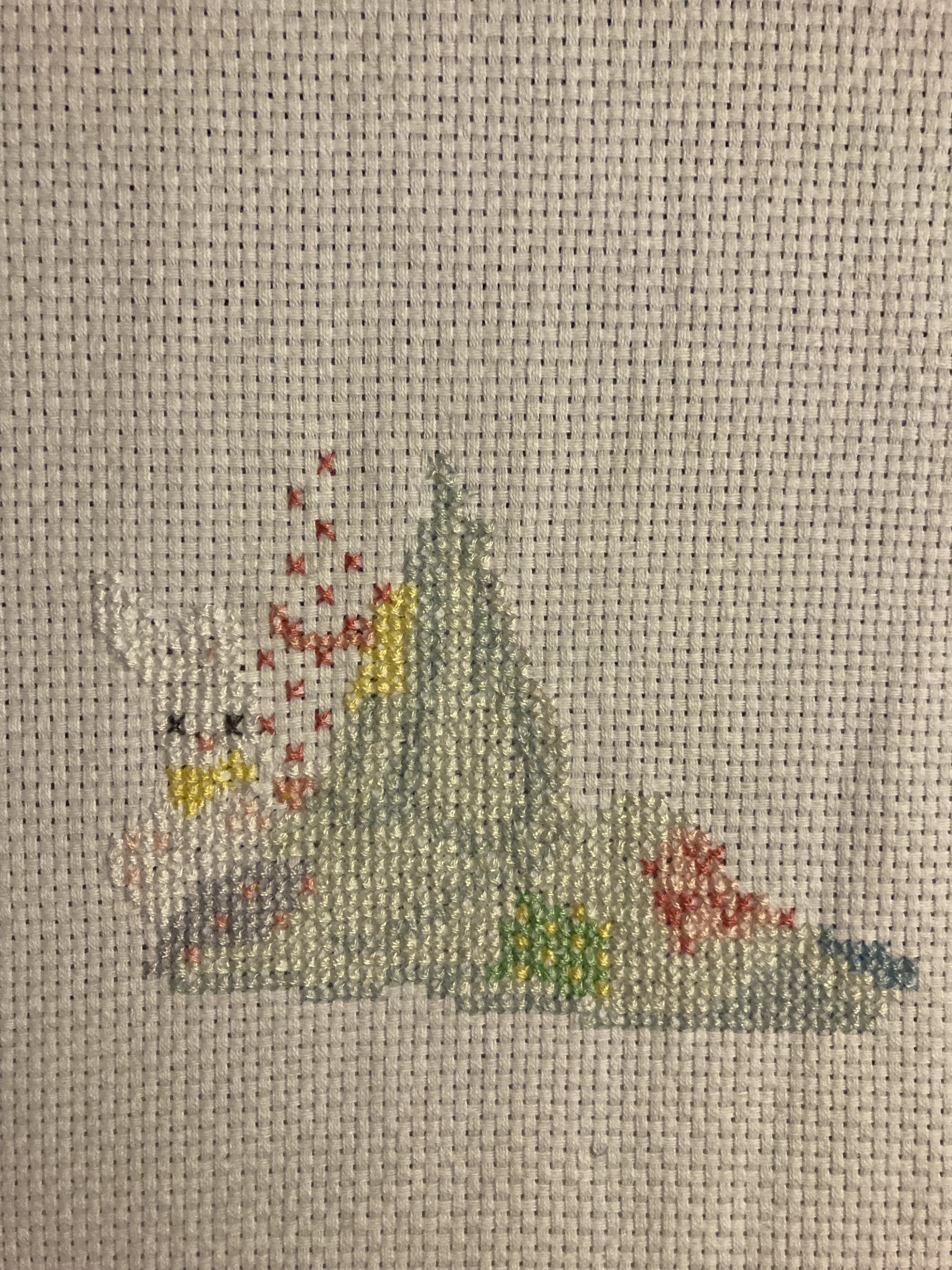 Each stitch is a form of serenity for me knowing it will complete a finished image. As I have mentioned before observing the back as I am mostly working on the front is just as intriguing to see how it changes. It’s also a metaphor the inside may be a mess at times and yet as long as we have God residing in us He will steady us keeping us together by design.