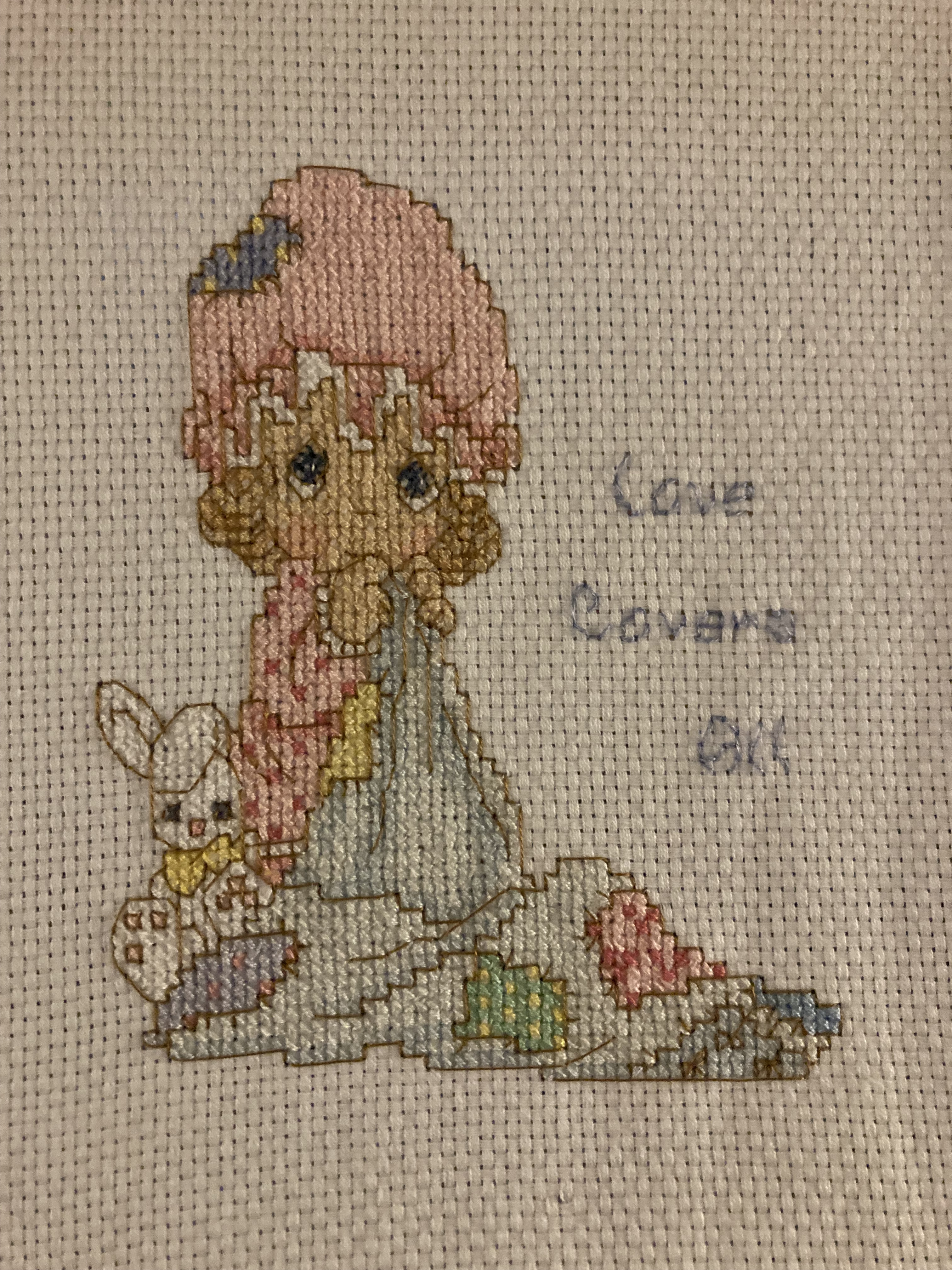 God’s Love Covers All. Isn’t that such a powerful message with such a sweet face to show it with. Did you have the security blanket you always had to have? Did it also have patches where someone had to keep fixing your blanket over and over again?