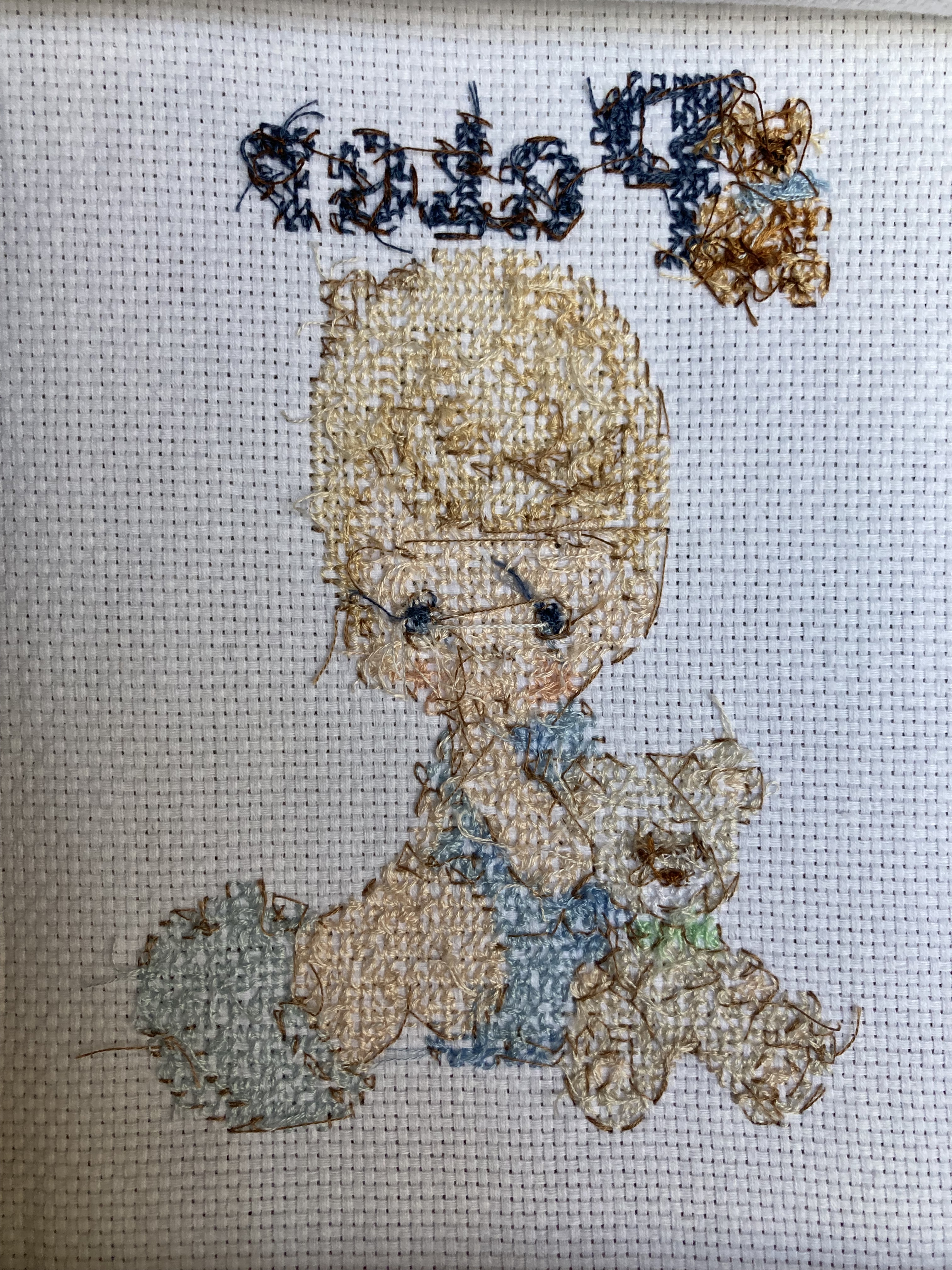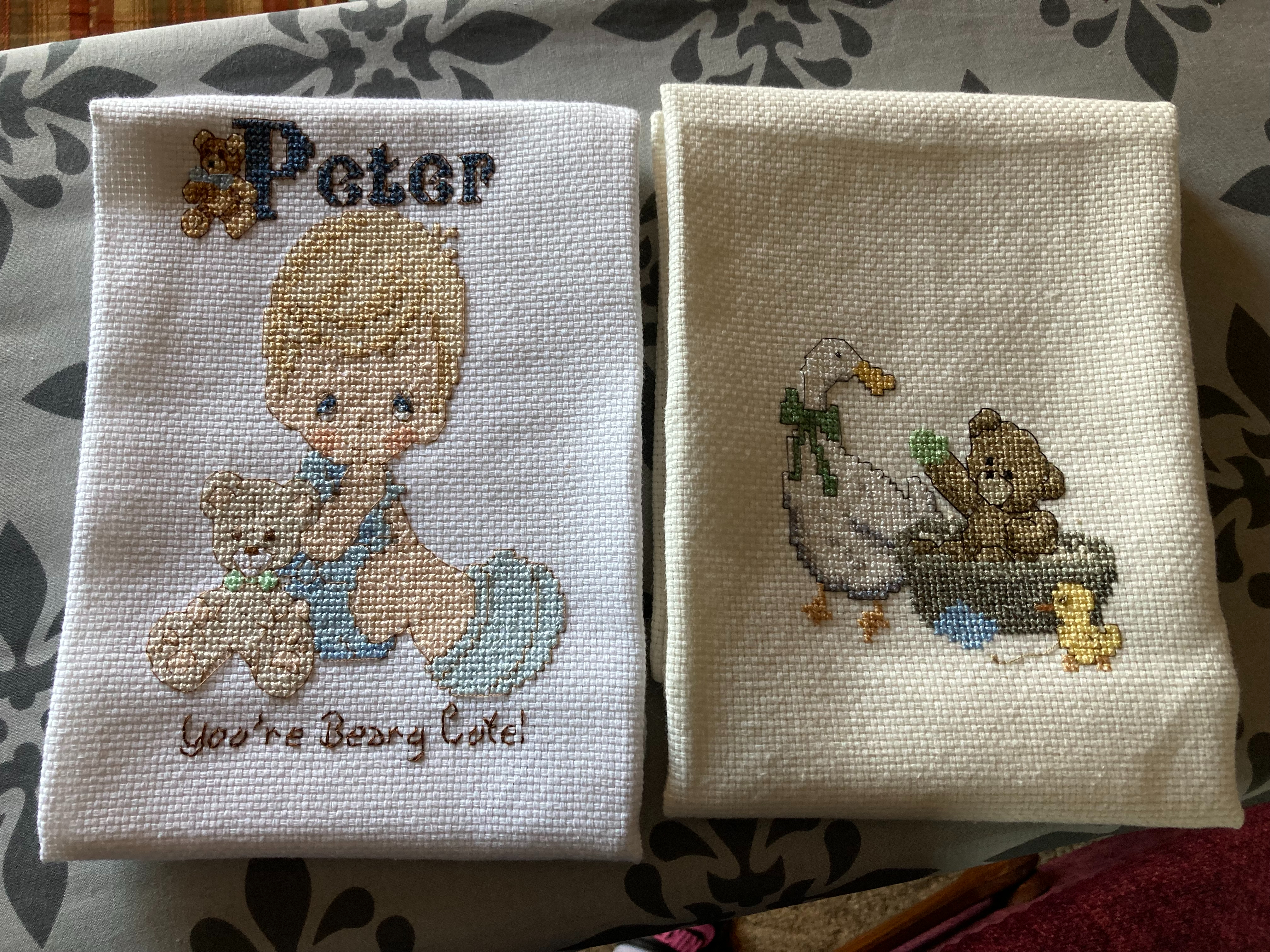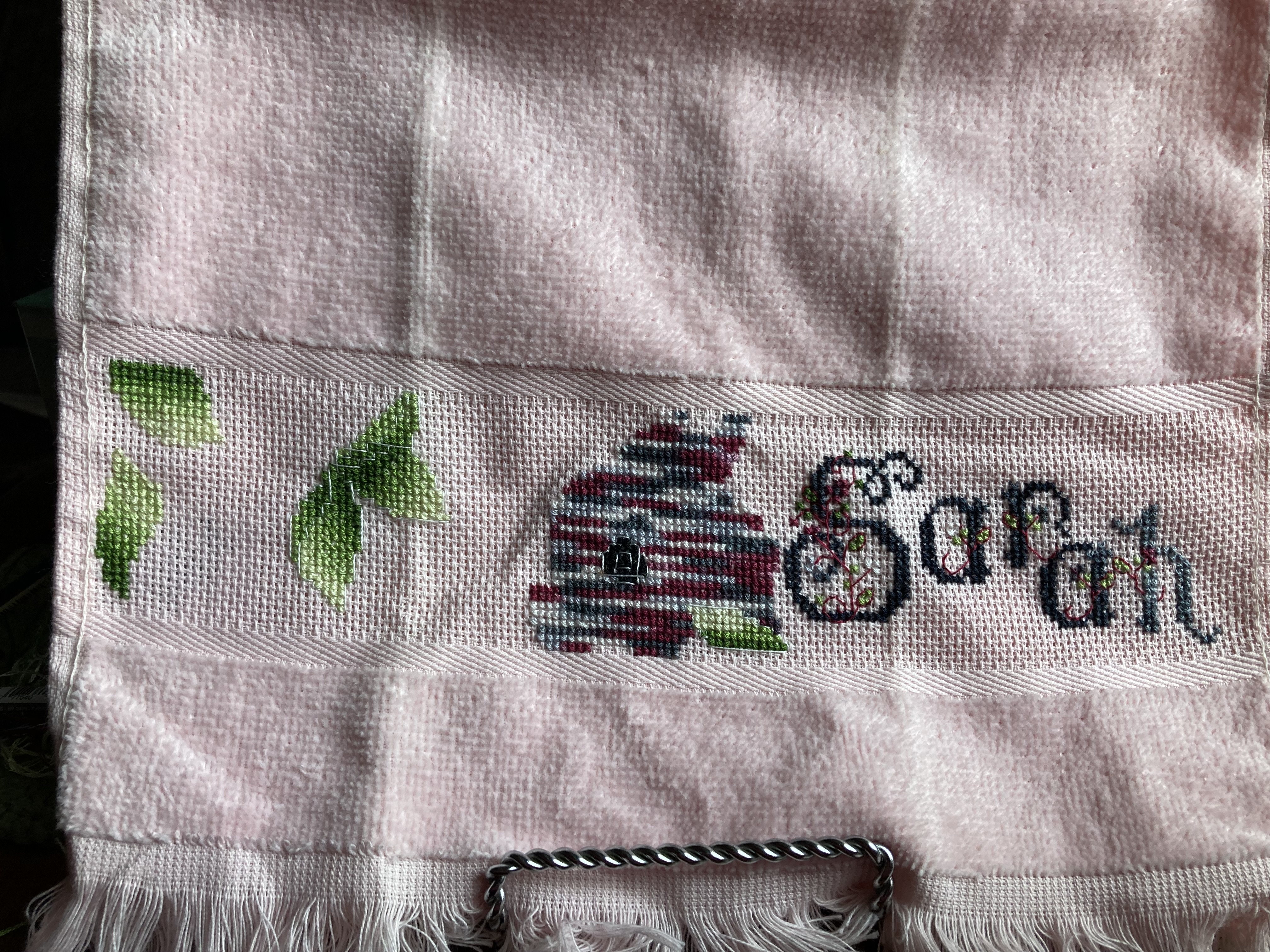 These gifts are a first time in a long while that I have personalized since Mom had their names. Sarah’s name came out beautifully I thought, I was thrilled. Then there was something about her baby brothers personalized towel that I couldn’t stop admiring. I had to change some colors and no matter how many times I counted to make sure I had the spacing right I wasn’t sure if it would be in the center or not. Yet… all of my worrying for nothing. I almost hated to give it to them even though it did have his name on it.
