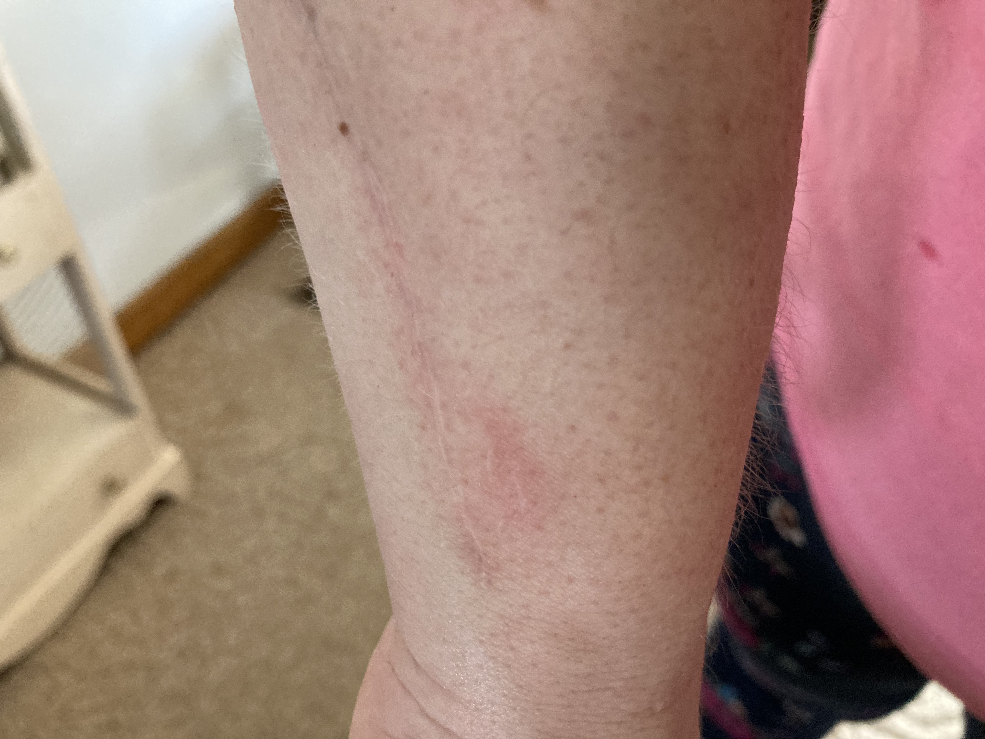 Fortunately it just left that little scratch, but I don’t think I have had any scratches like this since my surgery. I don’t remember seeing anything get redder than this did and this was about 5 minutes or more after the pain event. I had to leave what I was doing and just hold my arm a few minutes before I was able to think about what to do. Thankfully I didn’t throw away all my sleeves. First though my arm had gotten sticky and I still can’t figure that out since I hadn’t even opened the sugar yet for the tea.