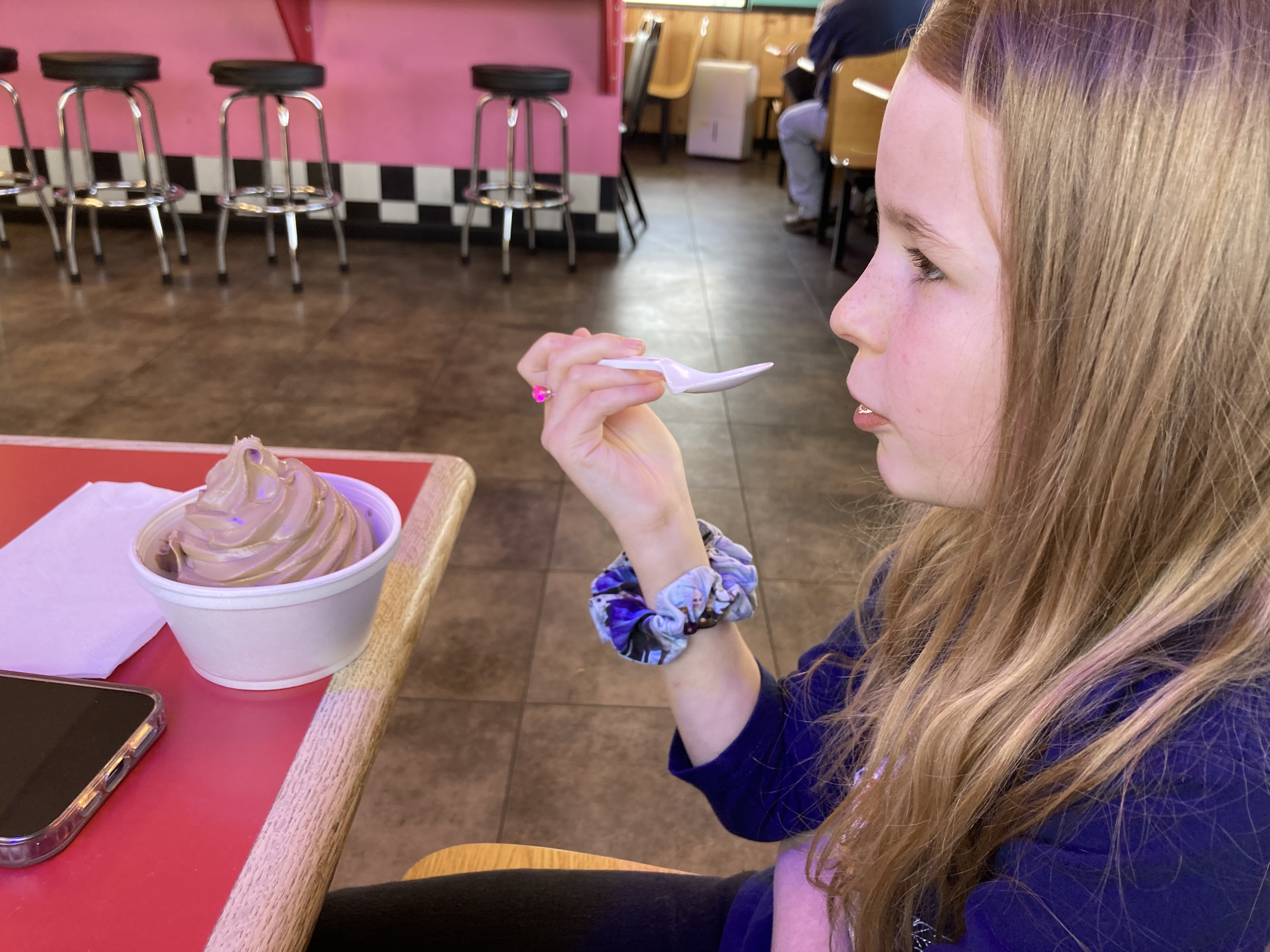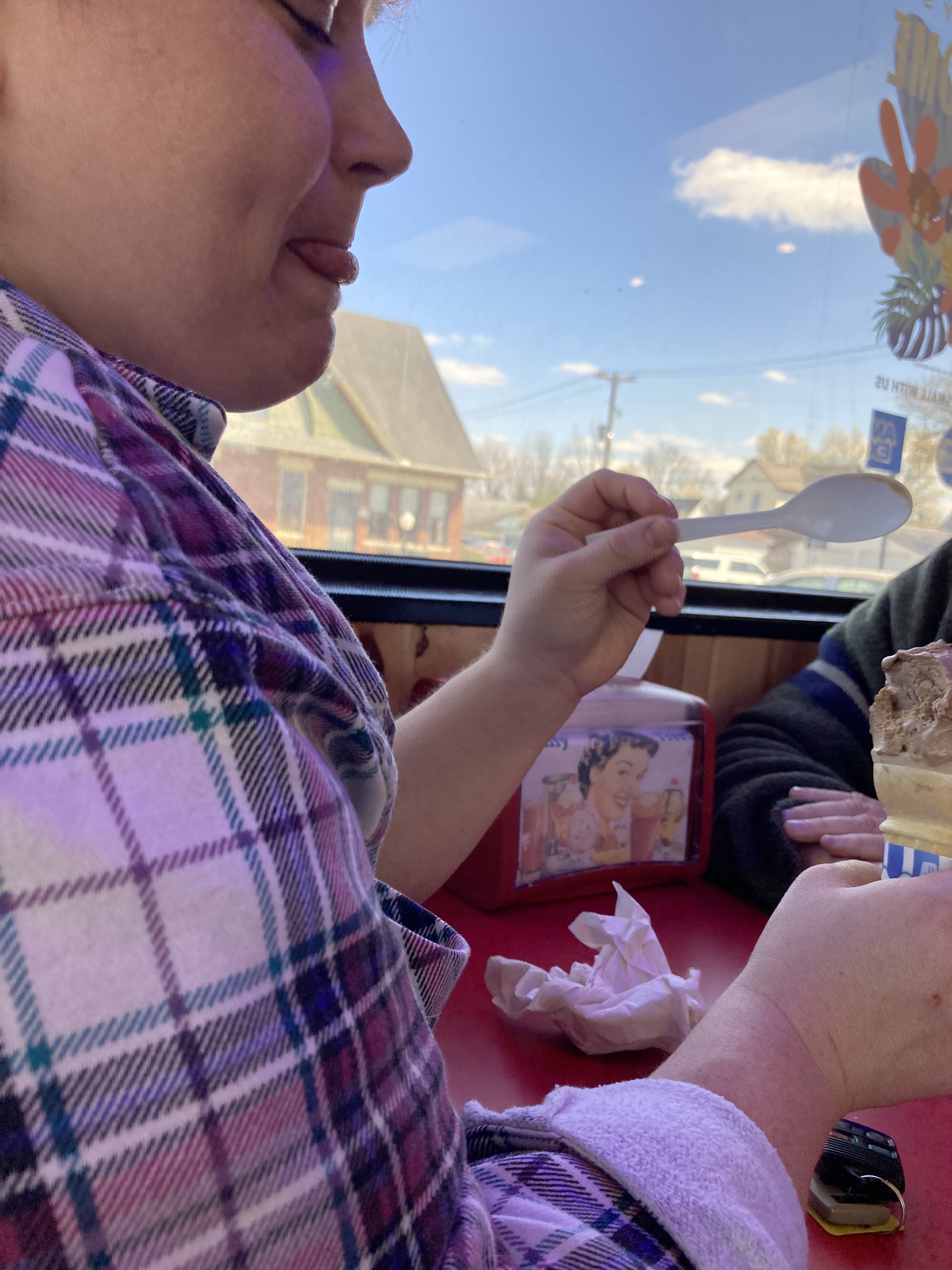 Instead of Mom trying on Easter dresses and eating at Applebees possibly, we ate quickly at Dairy Queen. Especially when I got messages saying ‘I am going to cry’ with another crying emoji. Even my text saying ‘we will dry those tears girly’ with a heart emoji didn’t help. Her response was, ‘that you are not funny either lol.’ Then she said, ‘no body better be laughing so yeah.’ My next three texts seemed to help calm her down. I said, ‘no one is laughing honey, and we are just about on our way I need to refill my tea and finally we love you with more emoji hearts and the kiss.’