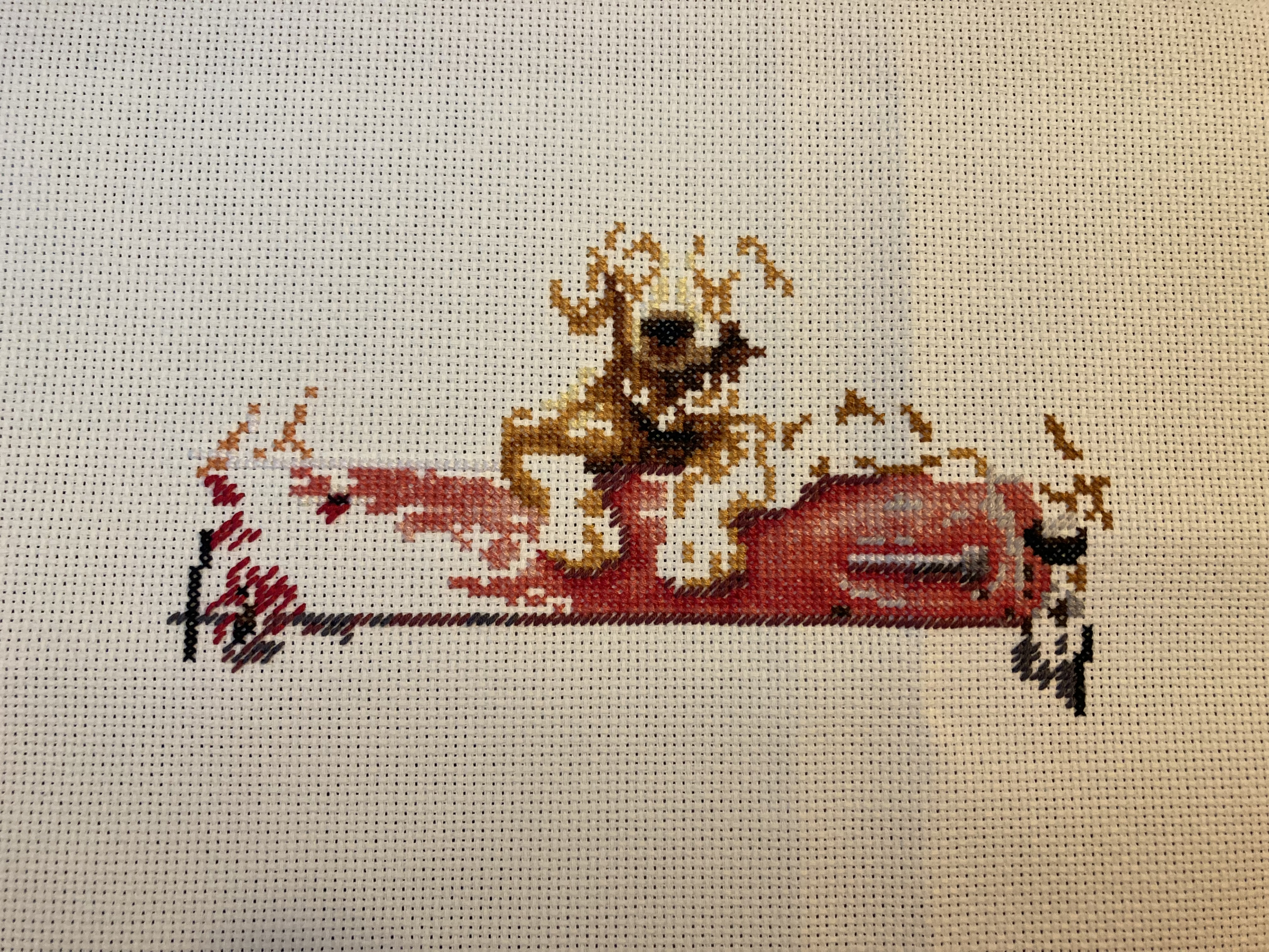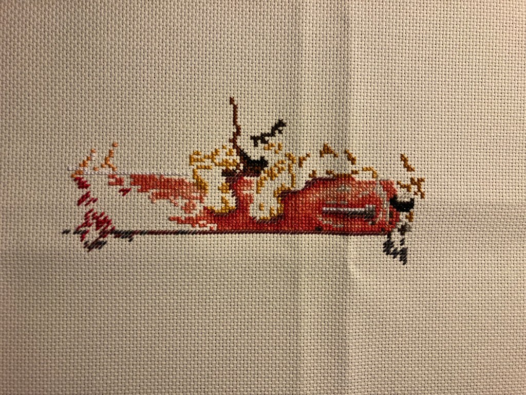 When I found this cross-stitch piece Selena was the first person I thought of the second one was Gina Lovelace. This is still nowhere near finished it is just a small rectangle of a more massive finished piece to come…