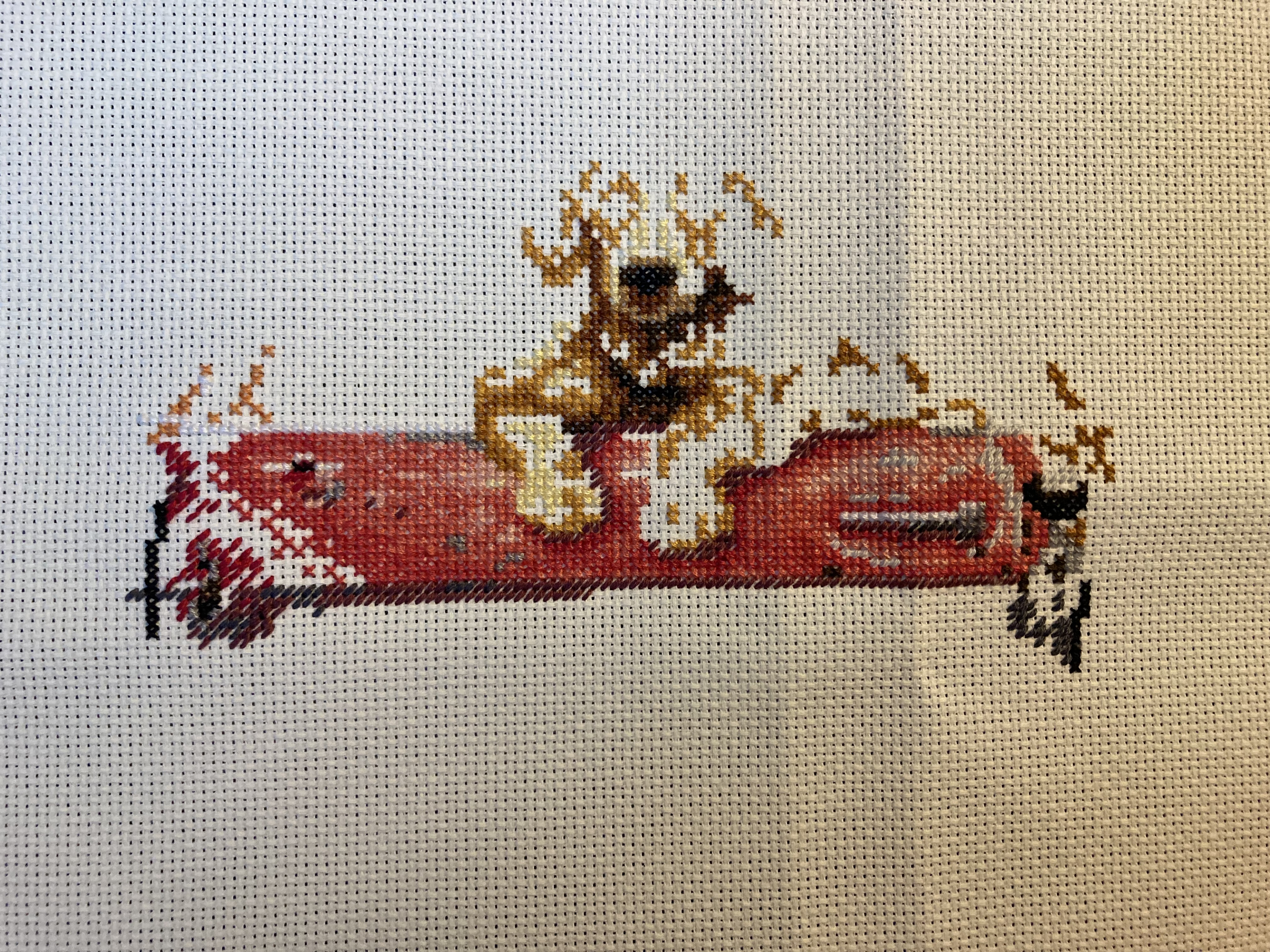 Ironically cross-stitch hasn’t given me much pain by itself. Driving and moving my wrist in different positions has or of course holding books or choir folders. Just holding a beloved Hymnal for congregational singing takes a toll on my wrist just as much as the folder. Or sometimes it just aches without doing anything like Sunday night. Although it was cold so maybe the weather affected it more like it has done during the day some.