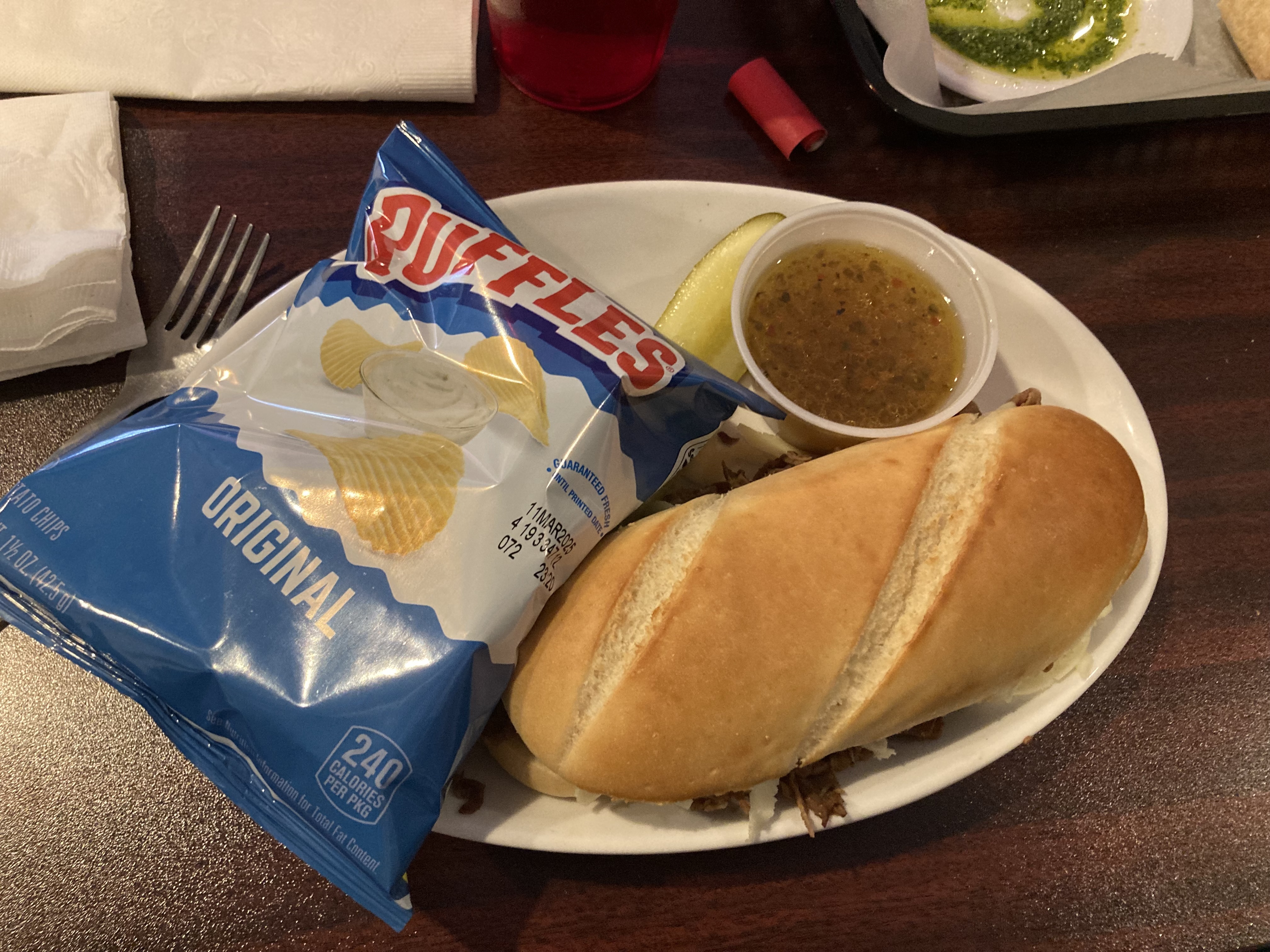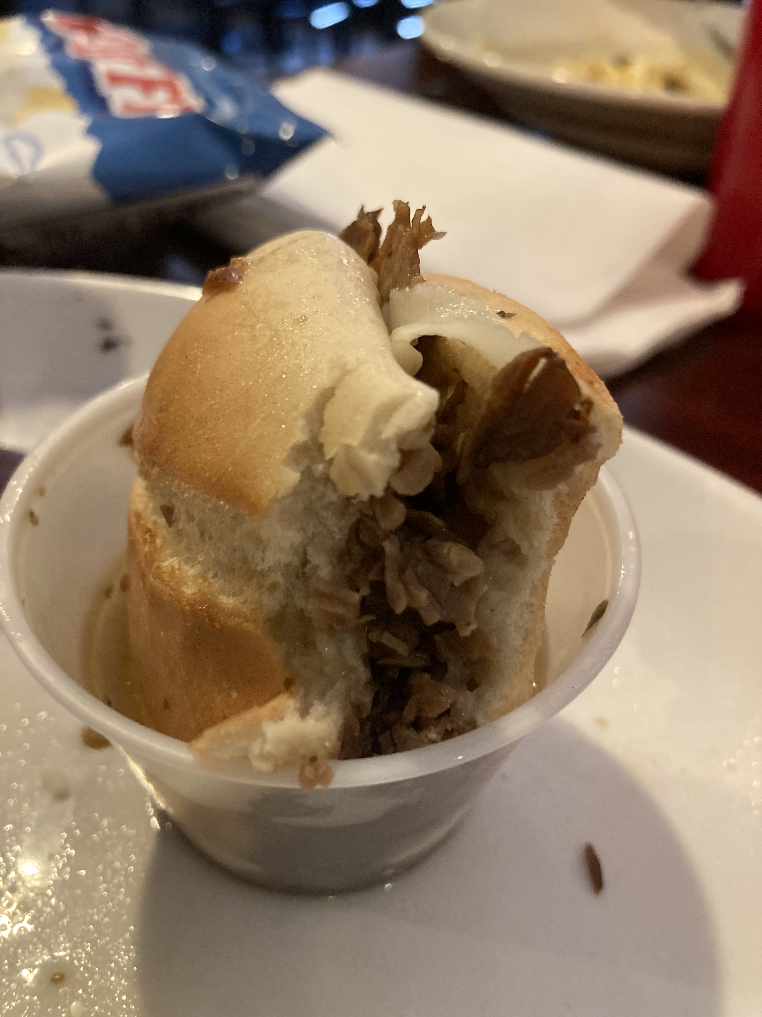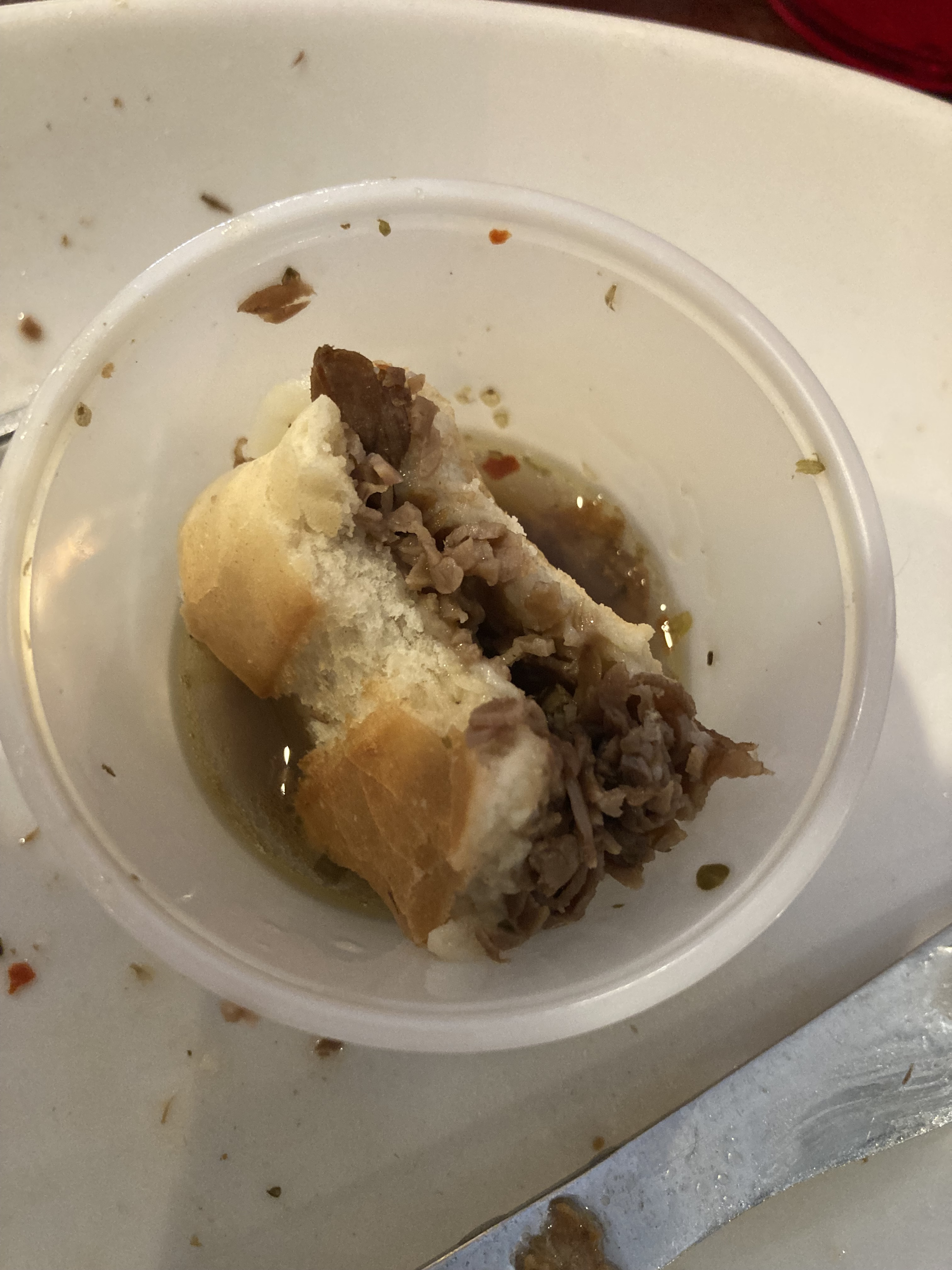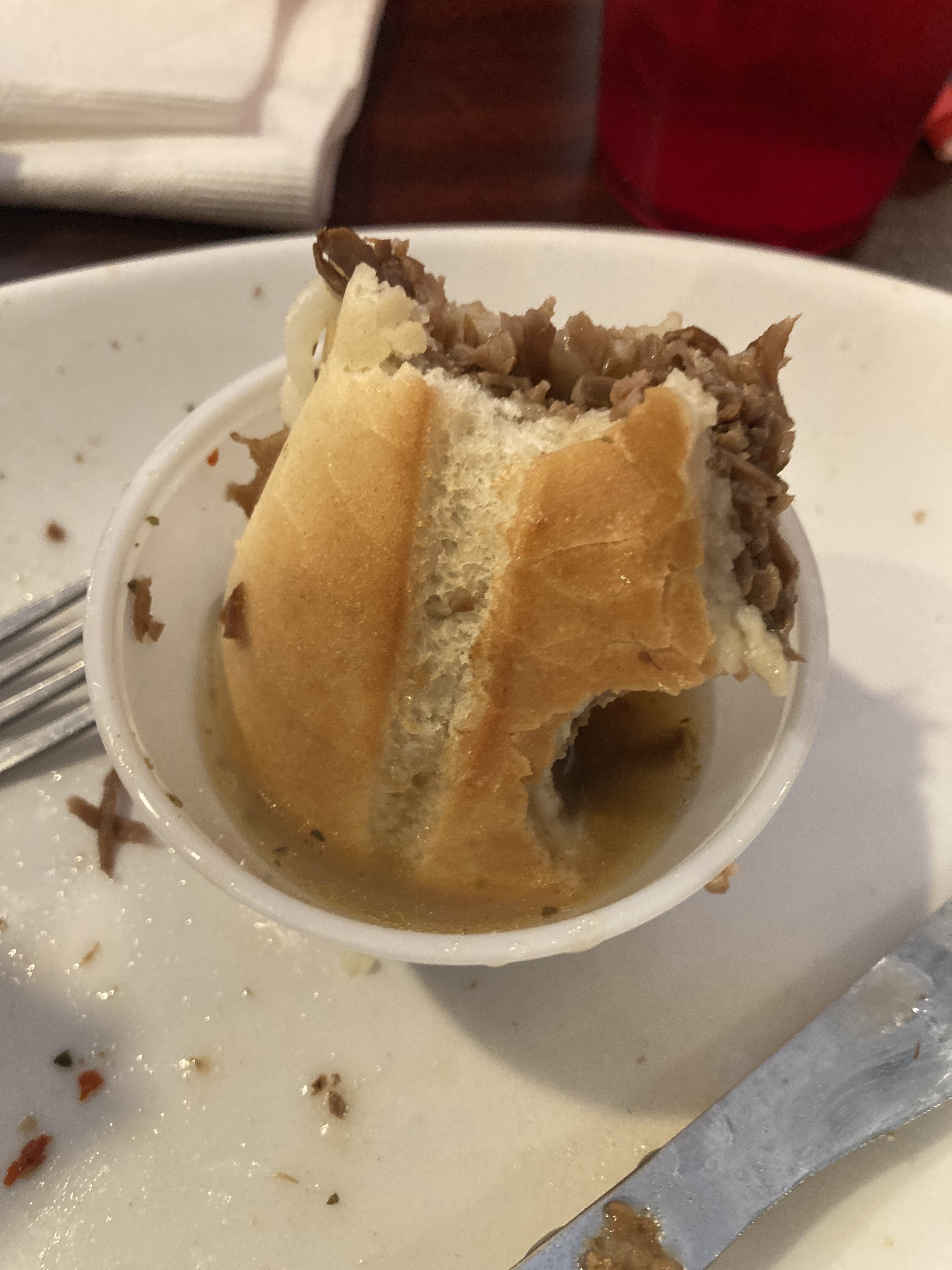 Another favorite of Grandpa’s was their Italian Beef; they were amazing. Tonight though in memory of his love for those sandwiches we ate at Joe’s Pizza tonight. Uncle Tony, James, Mom and I have fallen hard for these specific Beef’s they are the bomb and Thursdays the sandwich platters are a $1 off. Grandpa used to show us how he ate them and thought we should also do so. When he was so animated over this I have to admit he was right. Soaking the bread for several seconds in the Au Jus that was flavored perfectly. It was positively a divine meal.