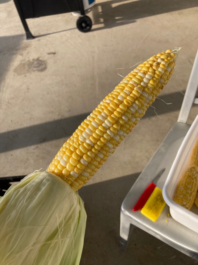 I had even brought my laptop out to watch something while we were working. It took us just about an hour to shuck these two full crates of corn. I knew ‘MASH’ is my brother’s favorite show to watch but the sun glared too much so we basically heard it for an hour. Our cat was also trying to get in on the fun. In one of the photos my glasses were falling off, sometimes it’s hard to keep them up. I look weird in that photo!