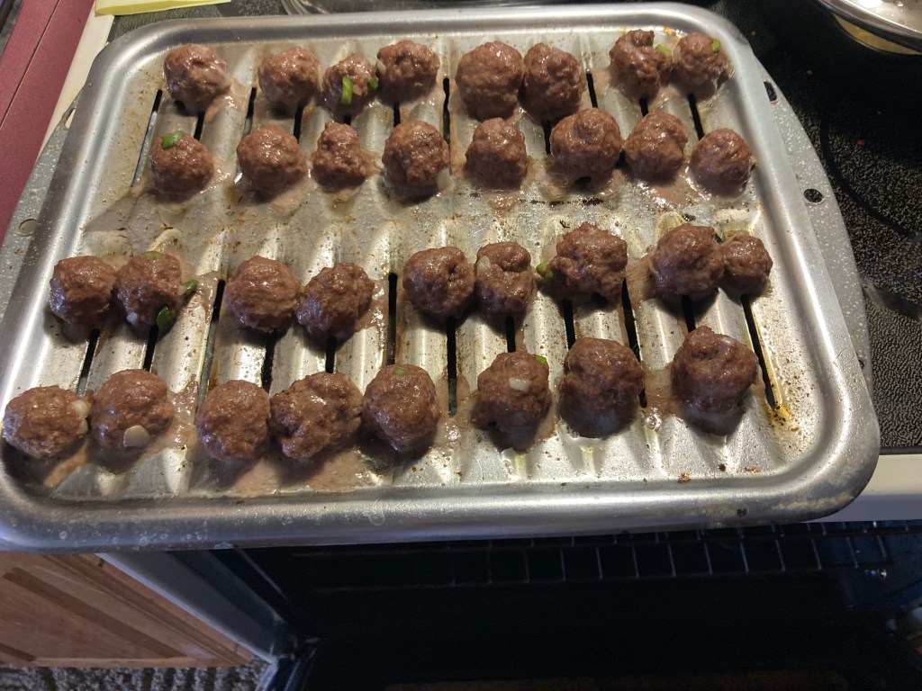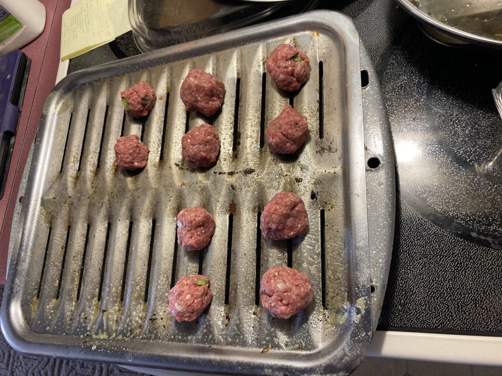 Especially lately when Mom’s finger has been in her brace. Today he helped me make the meatballs. Everyone likes their food a certain way, right! My Mom likes her meatballs small, but they do shrink while they are cooking so she likes them about a Silver dollar size so they end up being a good little size maybe even bite size. She doesn’t eat them in one bite though.