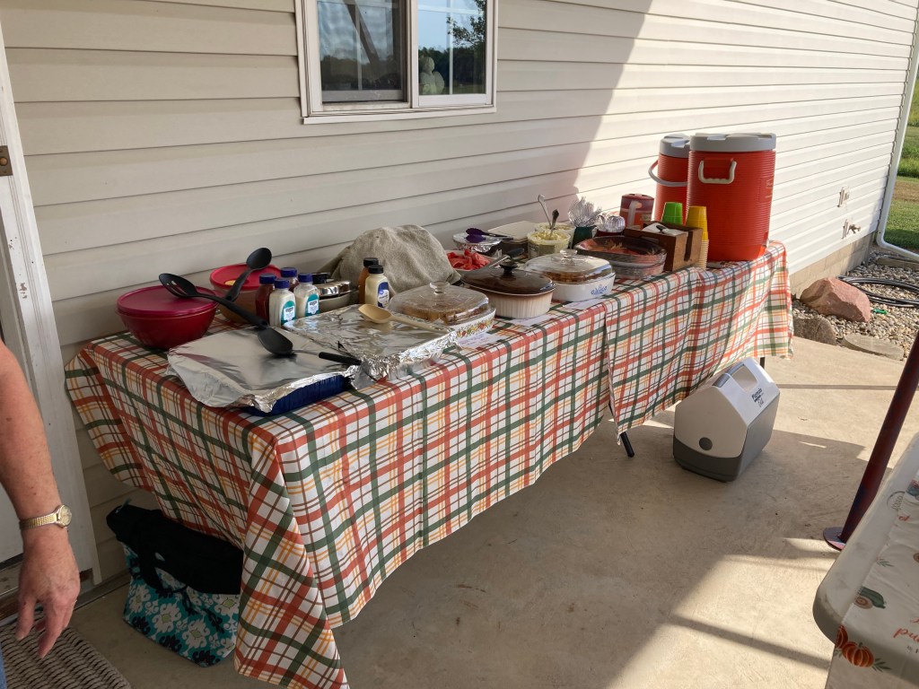 The cake was also mighty tasty. We had picked it up the day before. We also got the potato salad the day before on Wednesday morning. Spreading some of our tasks out during the week allowed us to seek a measure of calmness for the day of the party. Even though there was still a Wal-Mart run for Crystal Light Lemonade to have besides the Sweet Tea and Unsweet Tea.