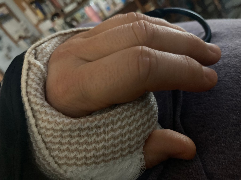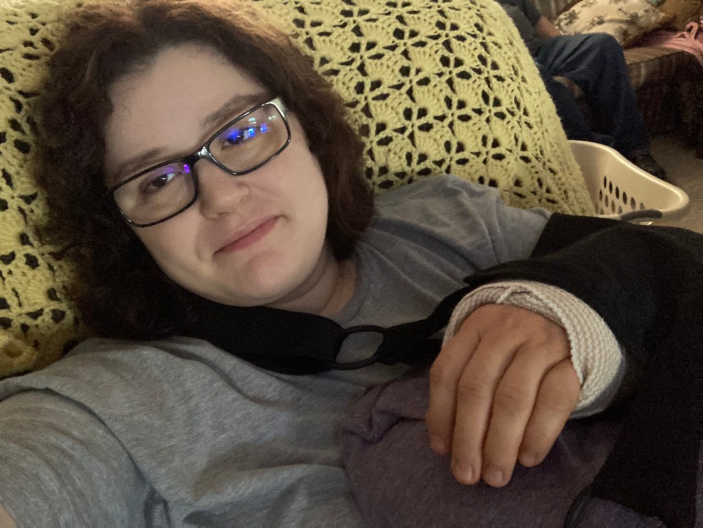 Yesterday, I woke up feeling pretty good considering my arm was dead from the clavicle pain bloc on Thursday. Then somehow Friday to Saturday it turned from feeling numb to being like a couple of bricks instead of my arm. It happens slowly until I get worn out from not sitting down and propping it up.