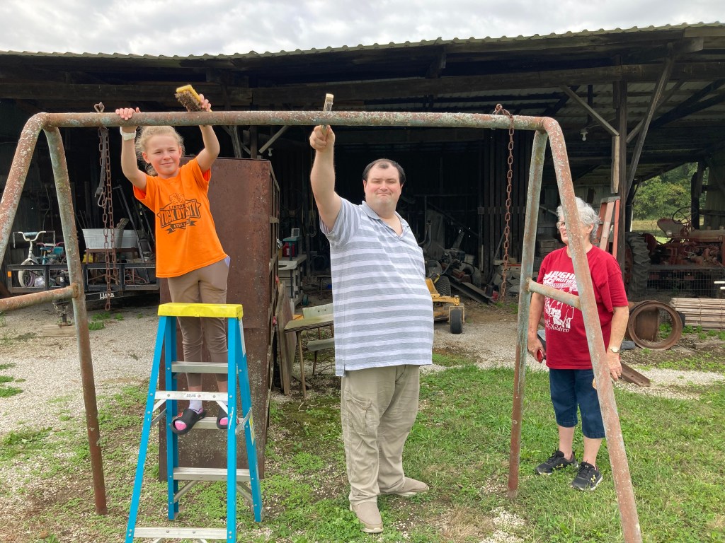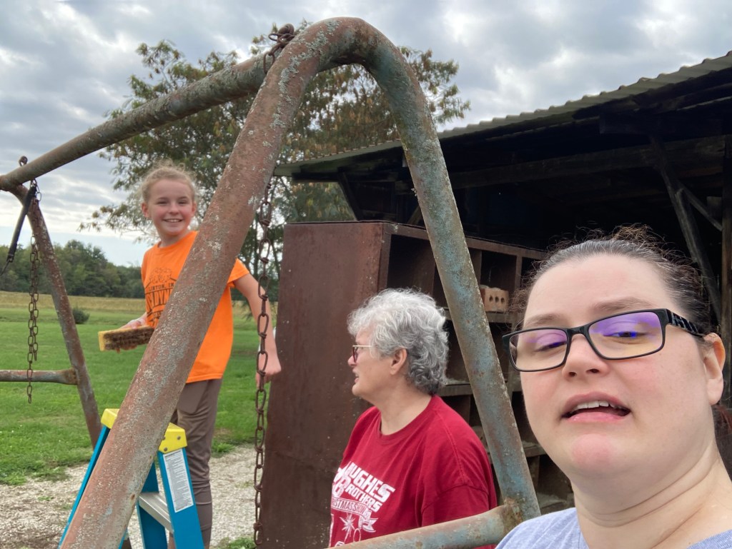 Earlier this year Mom and I got to talking about Grandma and Grandpa’s old swing set. It’s just the frame now, but it’s not being used anymore which really hurts my heart. I remember all the times I sat on that swing with Grandma and Grandpa and now it’s not being used and until recently was out in the elements.